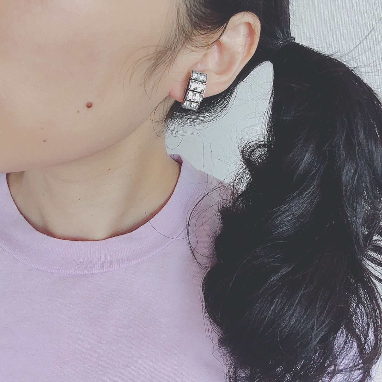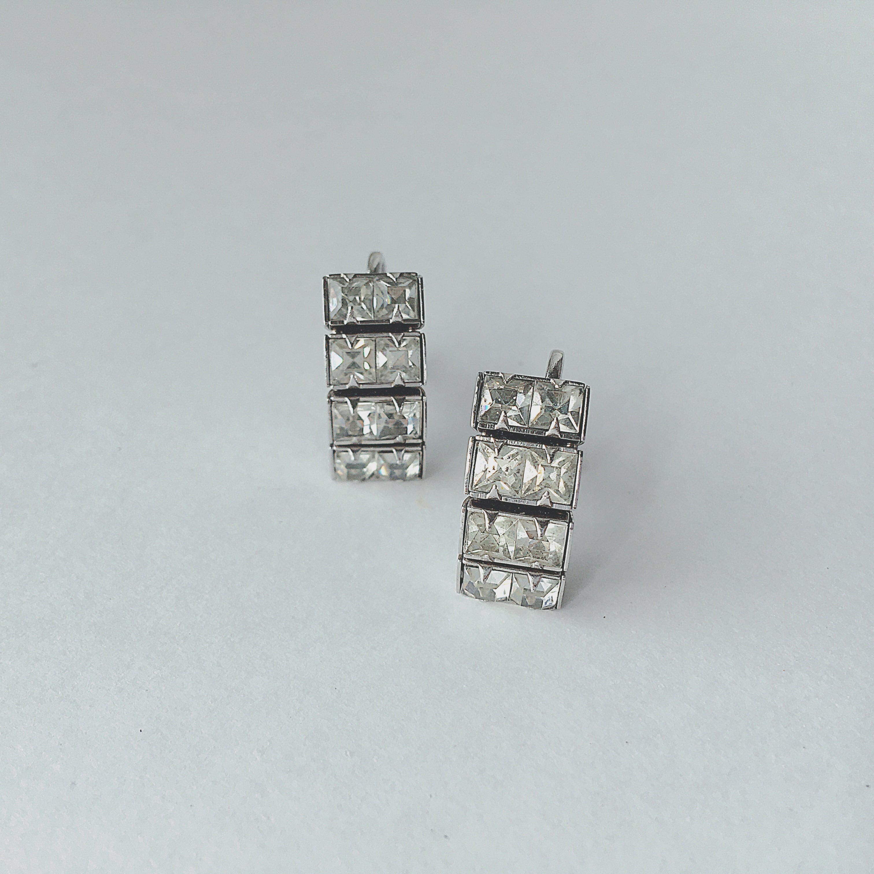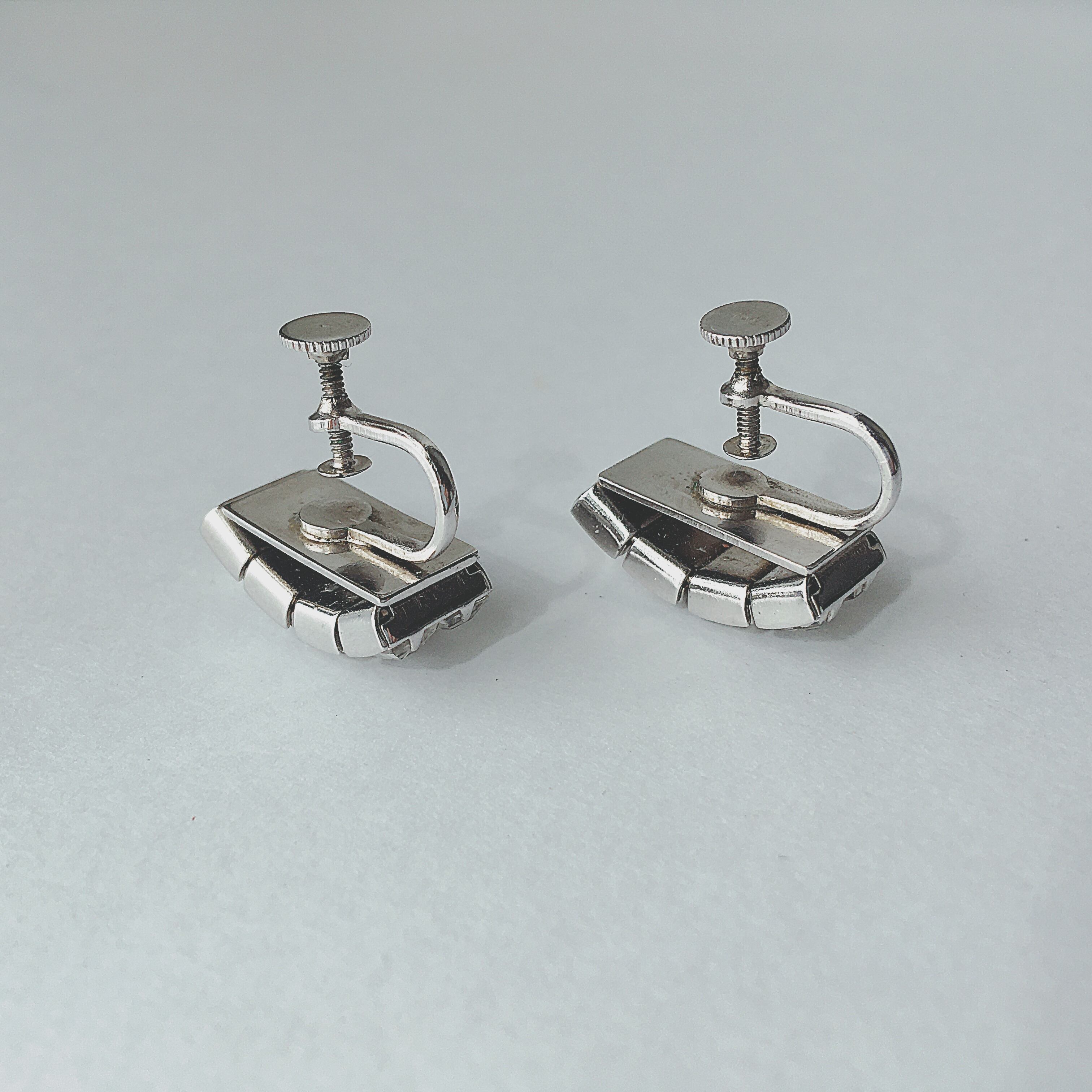 Vintage 40s art deco clear glass rhinestone rectangle ヴィンテージ 40年代 アールデコ クリア ガラス ラインストーン イヤリング b292 | OBAKEPEACH