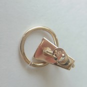 台形の土台にドアハンドルのようなロープ模様のハープフープがついています。