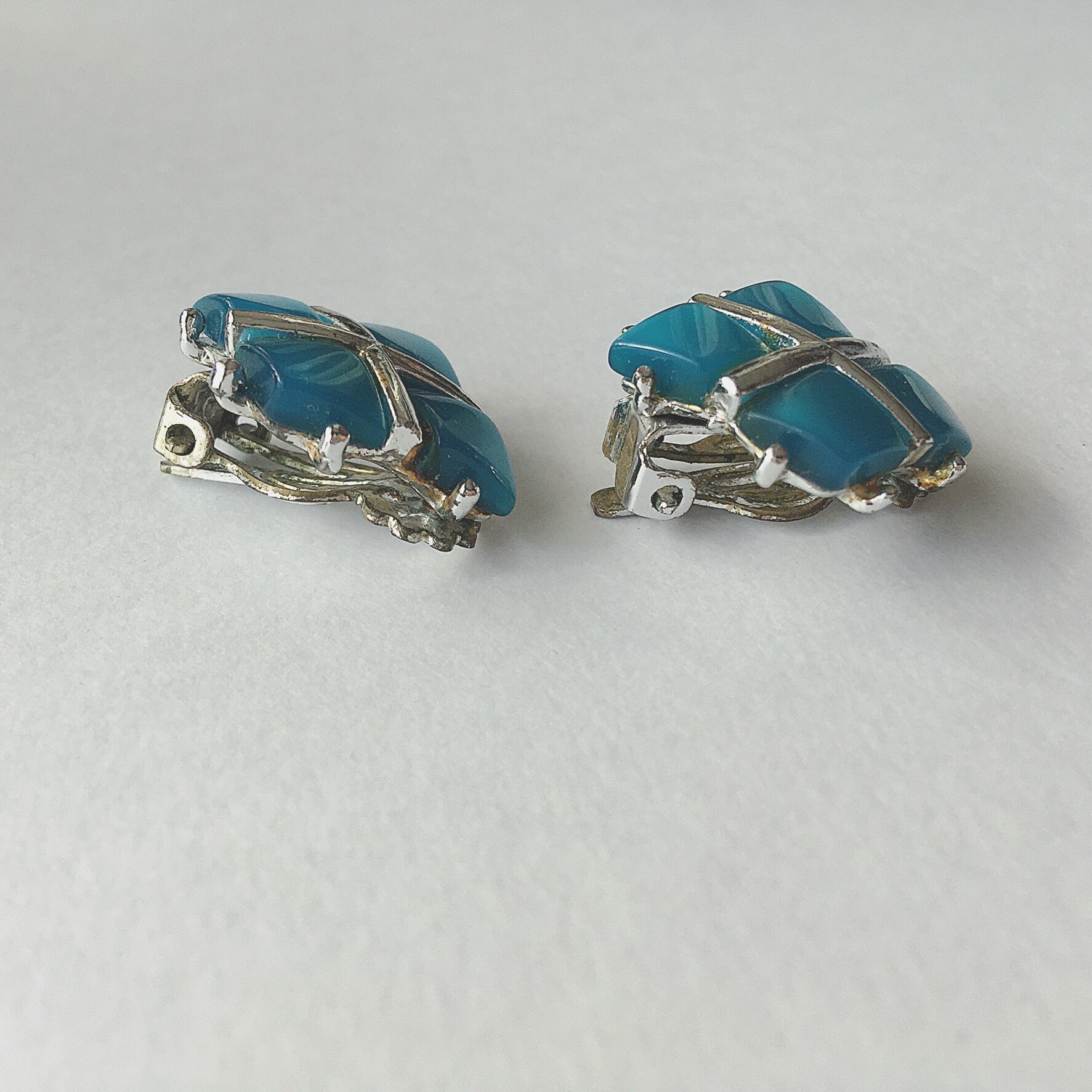 Vintage 50s - 60s silver tone blue thermoset argyle earrings ヴィンテージ 50年代 - 60年代 シルバートーン ブルー サーモセット プラスチック アーガイル 菱形 イヤリング t88 b193 | OBAKEPEACH