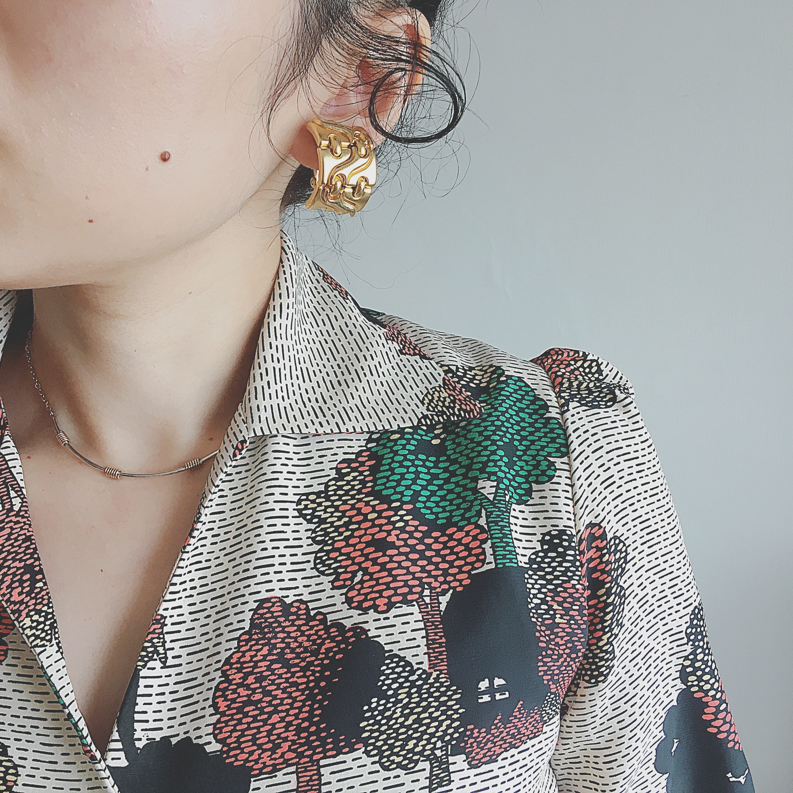 Vintage 60s - 80s gold tone half hoop earrings ヴィンテージ 60年代 - 80年代 ゴールドトーン ハープフープ イヤリング b176 | OBAKEPEACH