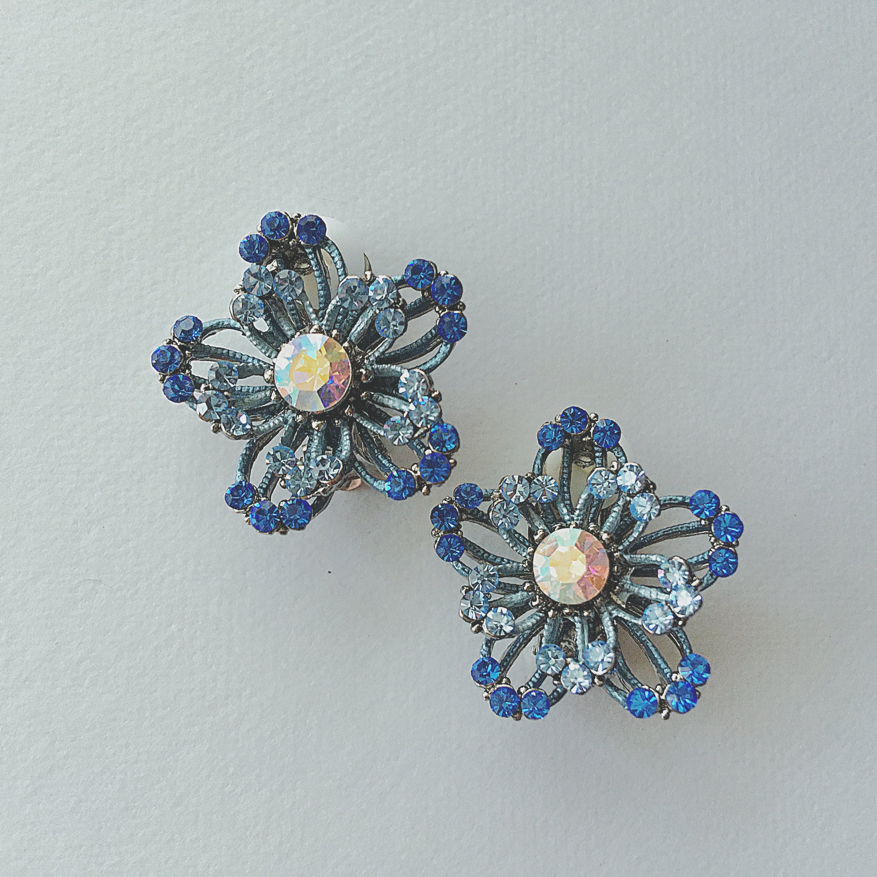 ゴールドメッキの土台にブルーのラインストーンをあしらった花のデザイン。
