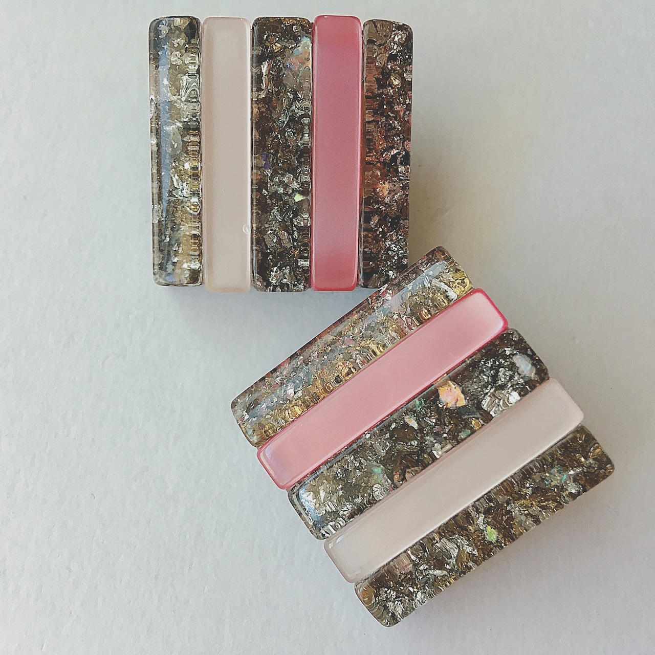 縦に入った二本薄いピンクと濃いピンクのラインがアクセントになっています。