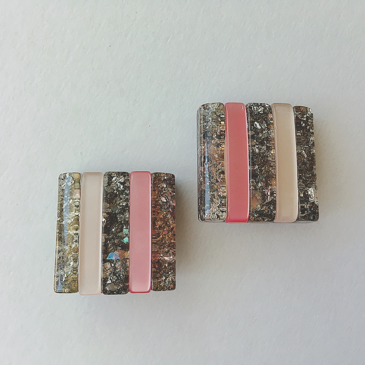 Vintage Italy clear pink acrylic square earrings ヴィンテージ イタリア製 クリア ピンク アクリル スクエア イヤリング b105