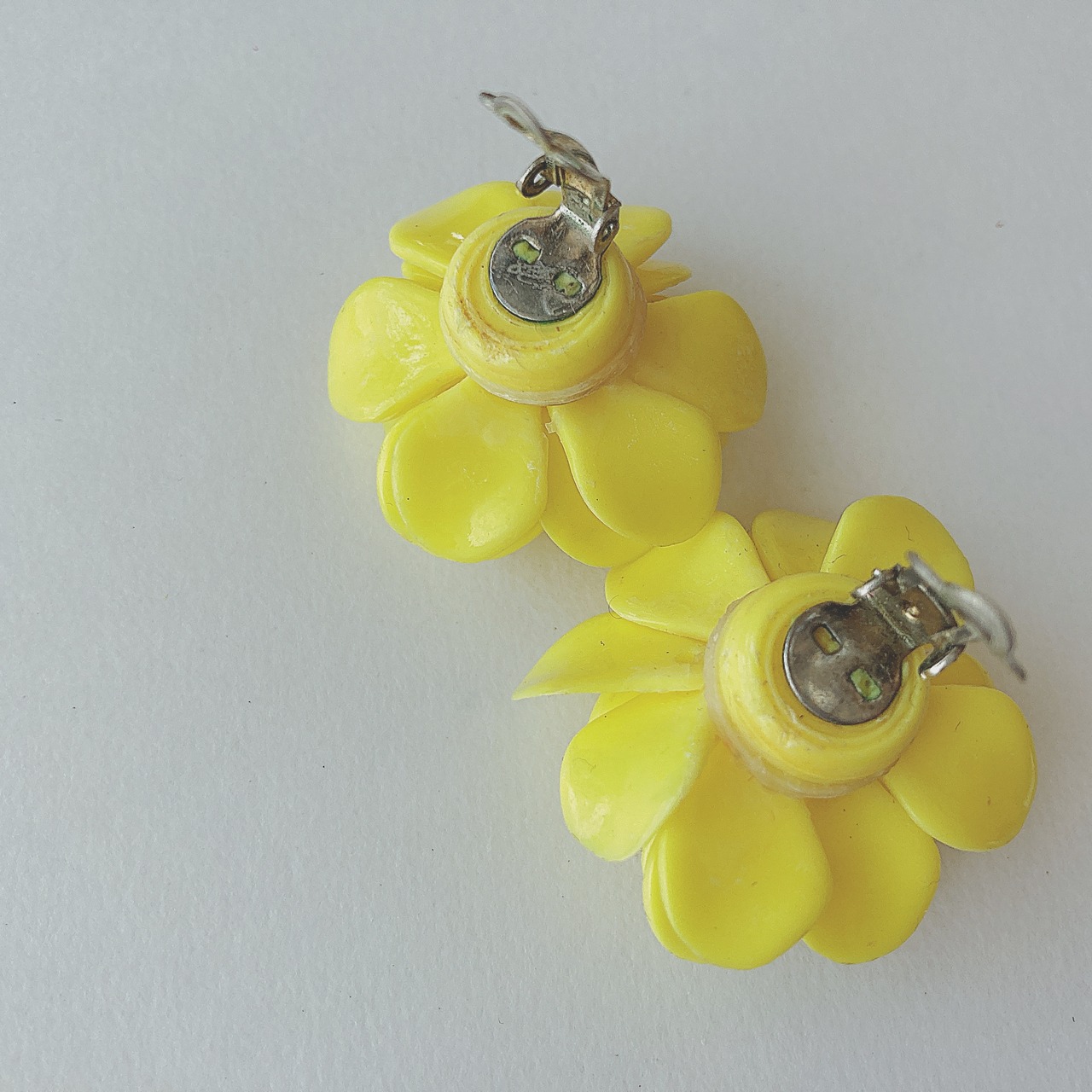 Vintage 50s - 60s yellow soft plastic flower earrings ヴィンテージ 50年代 - 60年代 イエロー ソフト プラスチック フラワー 花 イヤリング b912 | OBAKEPEACH