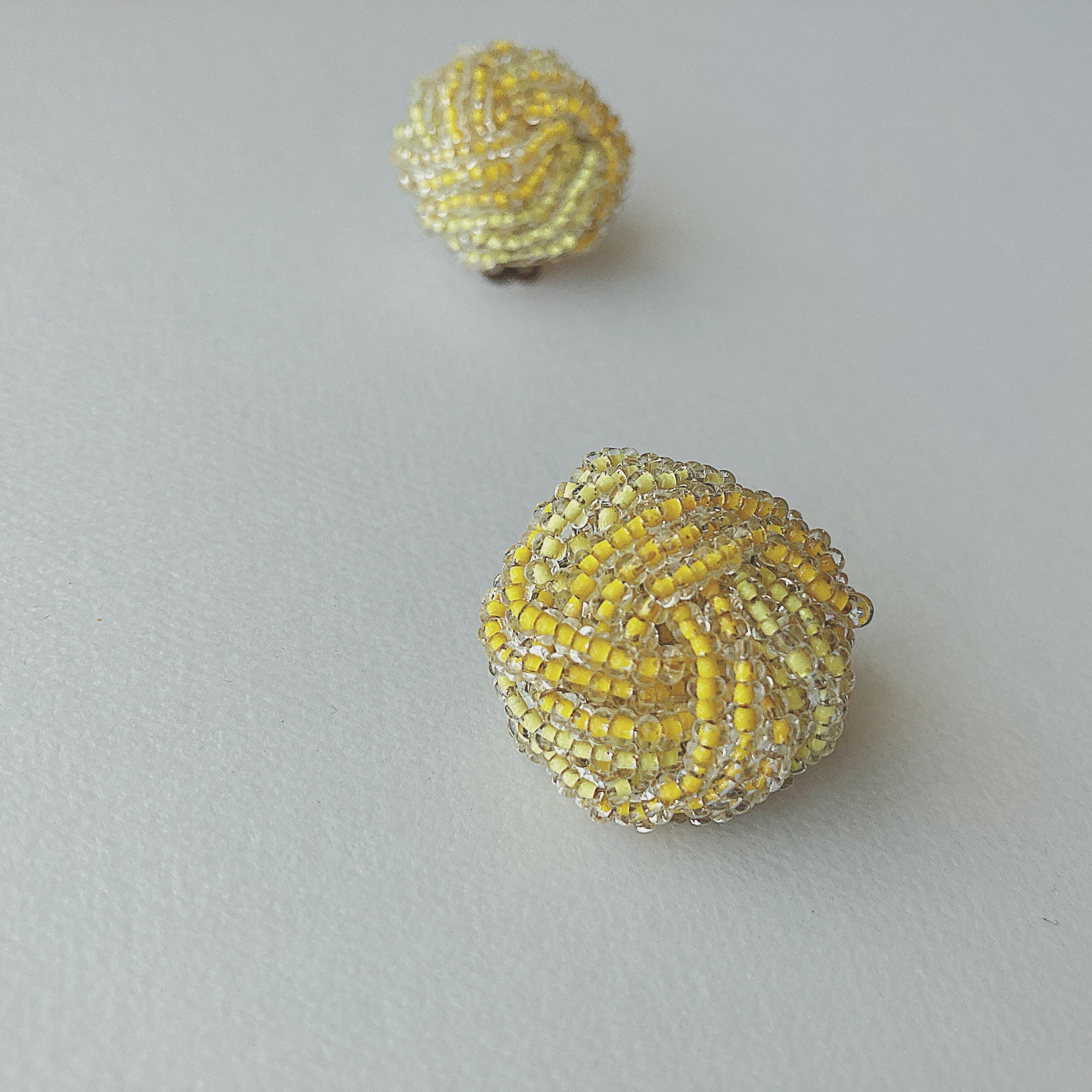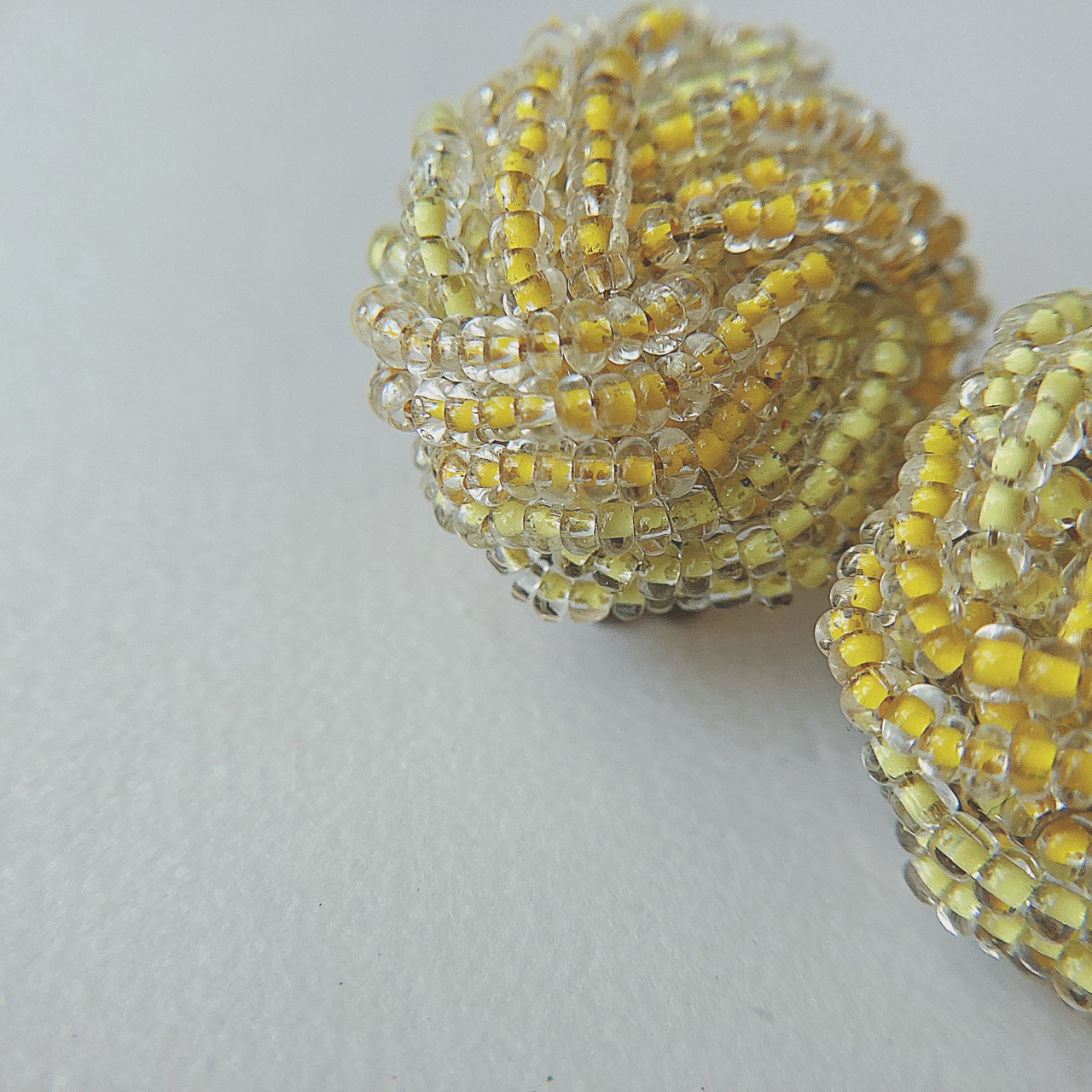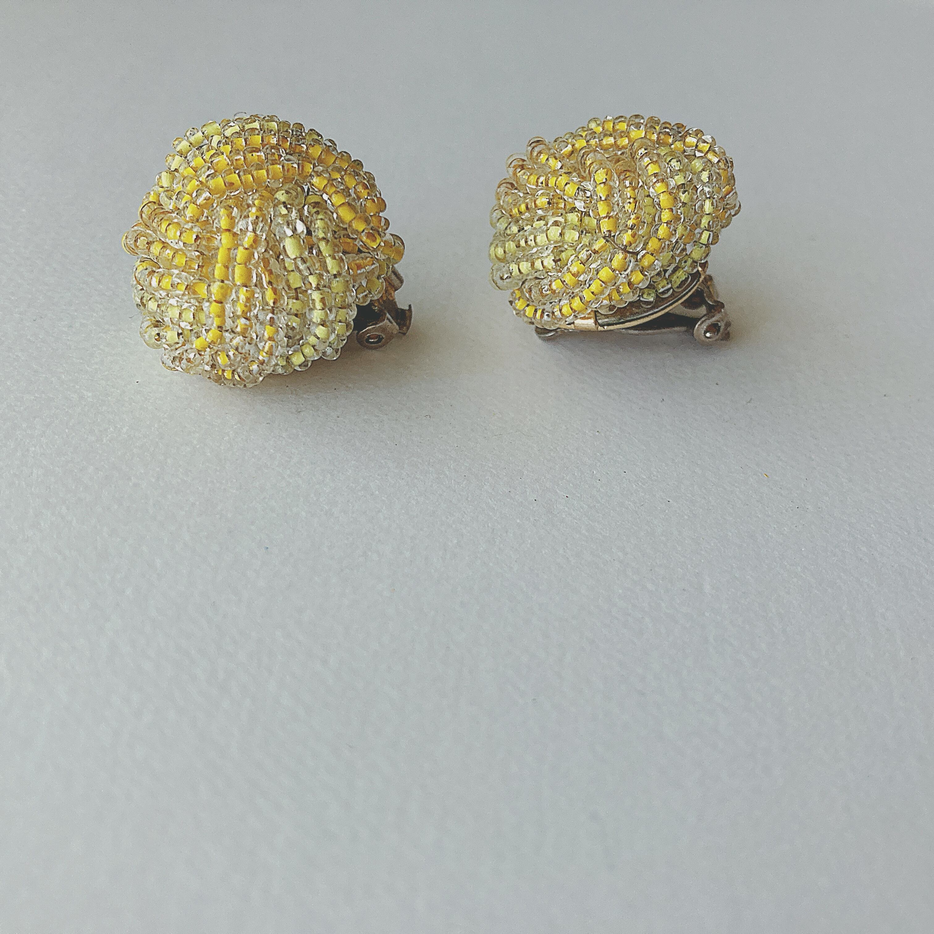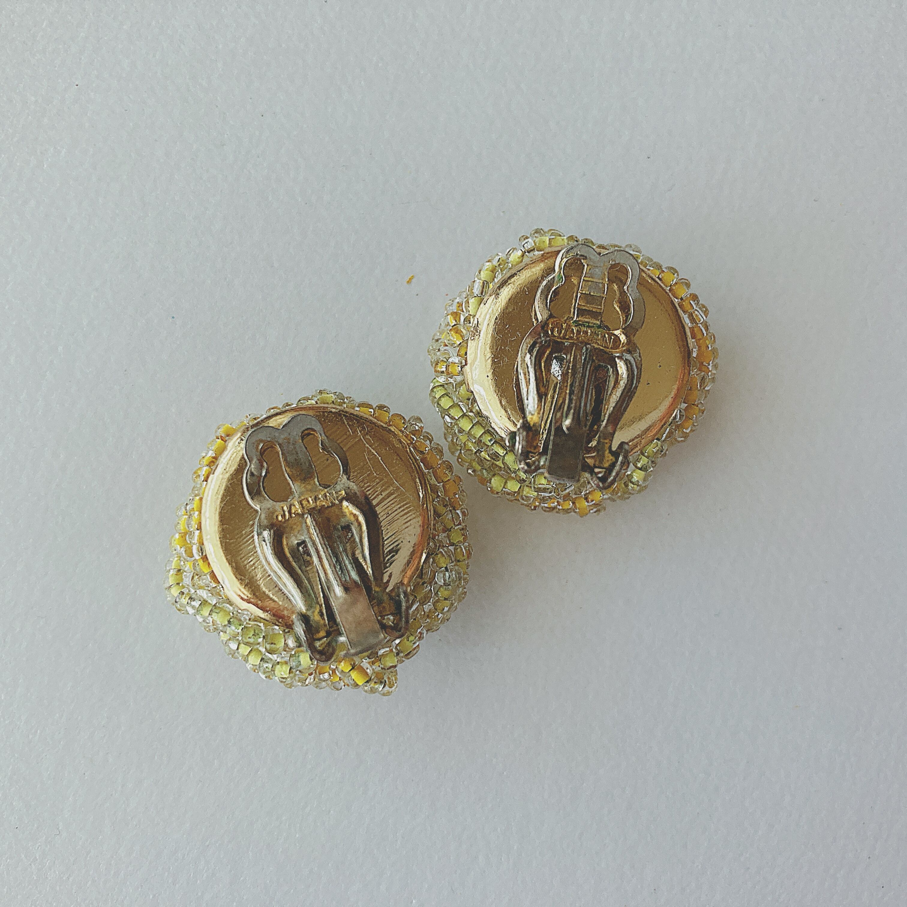 Vintage 50s - 60s Japan yellow beads earrings ヴィンテージ 50年代 - 60年代 日本製 イエロー ビーズ イヤリング b987 | OBAKEPEACH