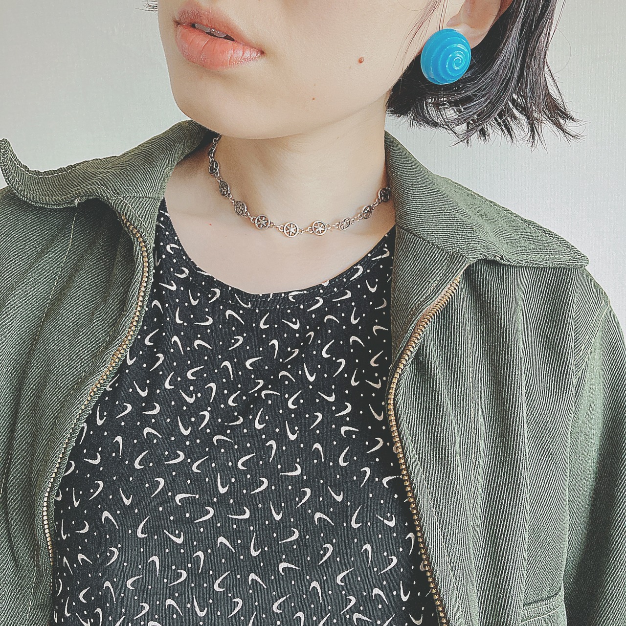 Vintage 50s - 70s blue plastic spiral earrings ヴィンテージ 50年代 - 70年代 ブルー プラスチック スパイラル 渦巻き イヤリング b1023 | OBAKEPEACH