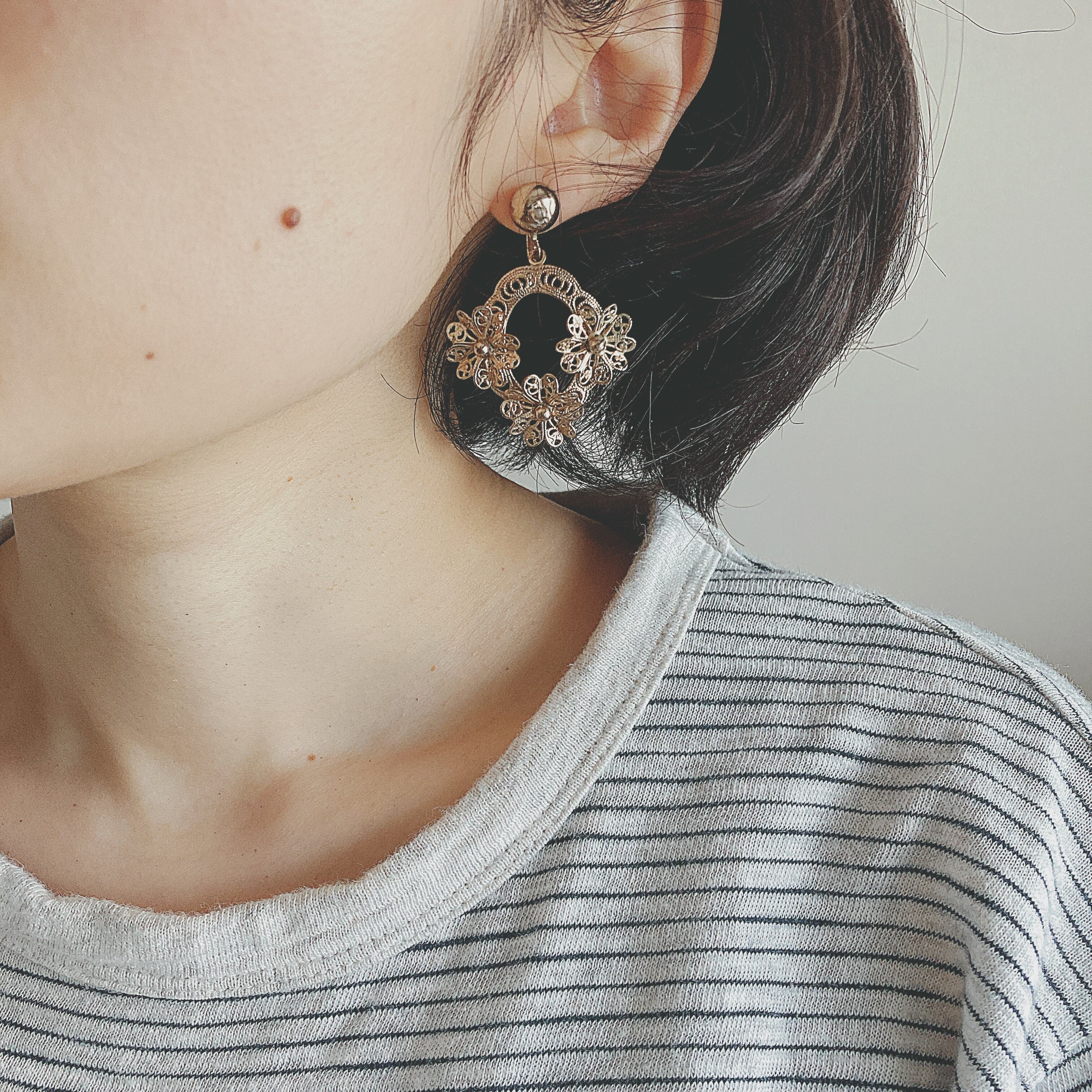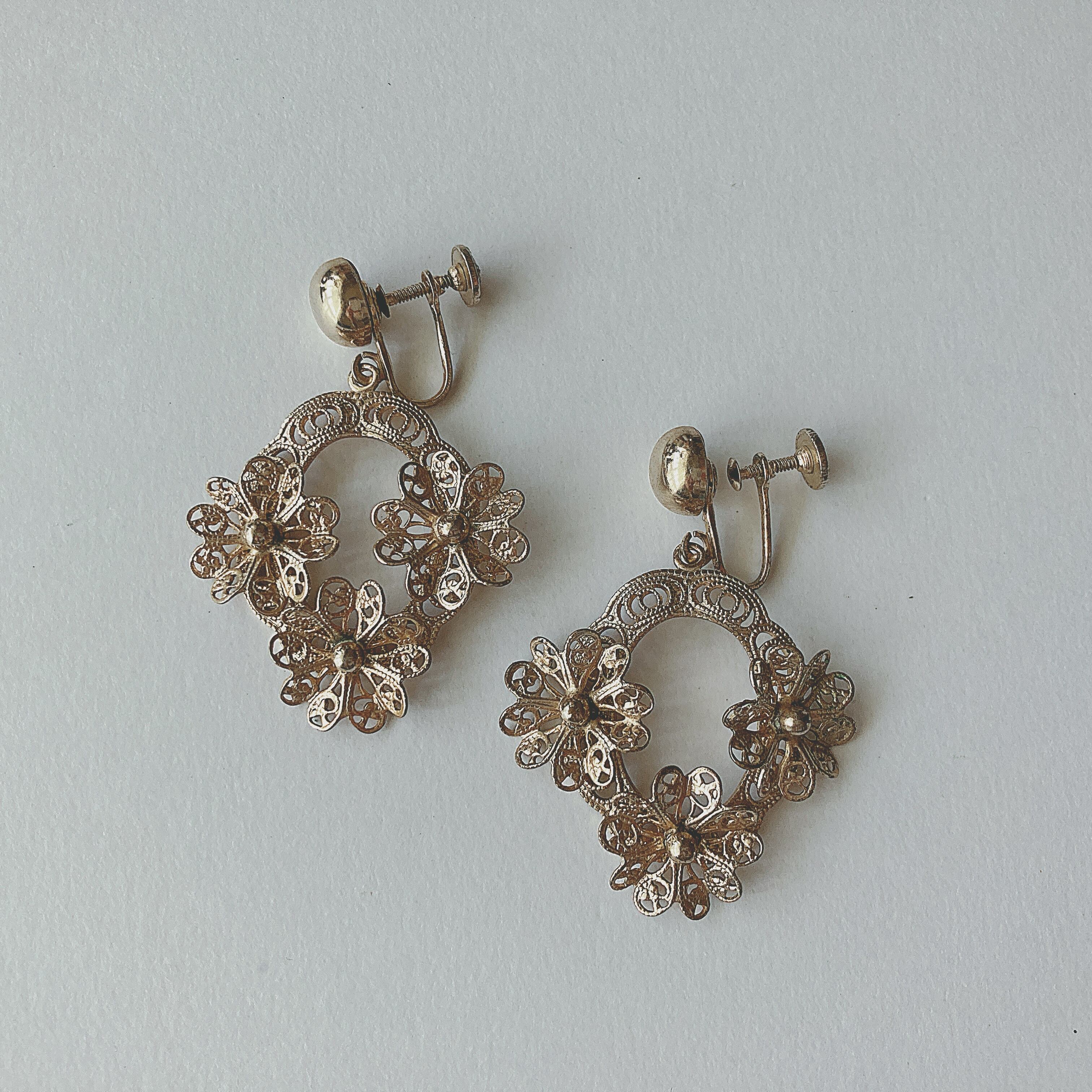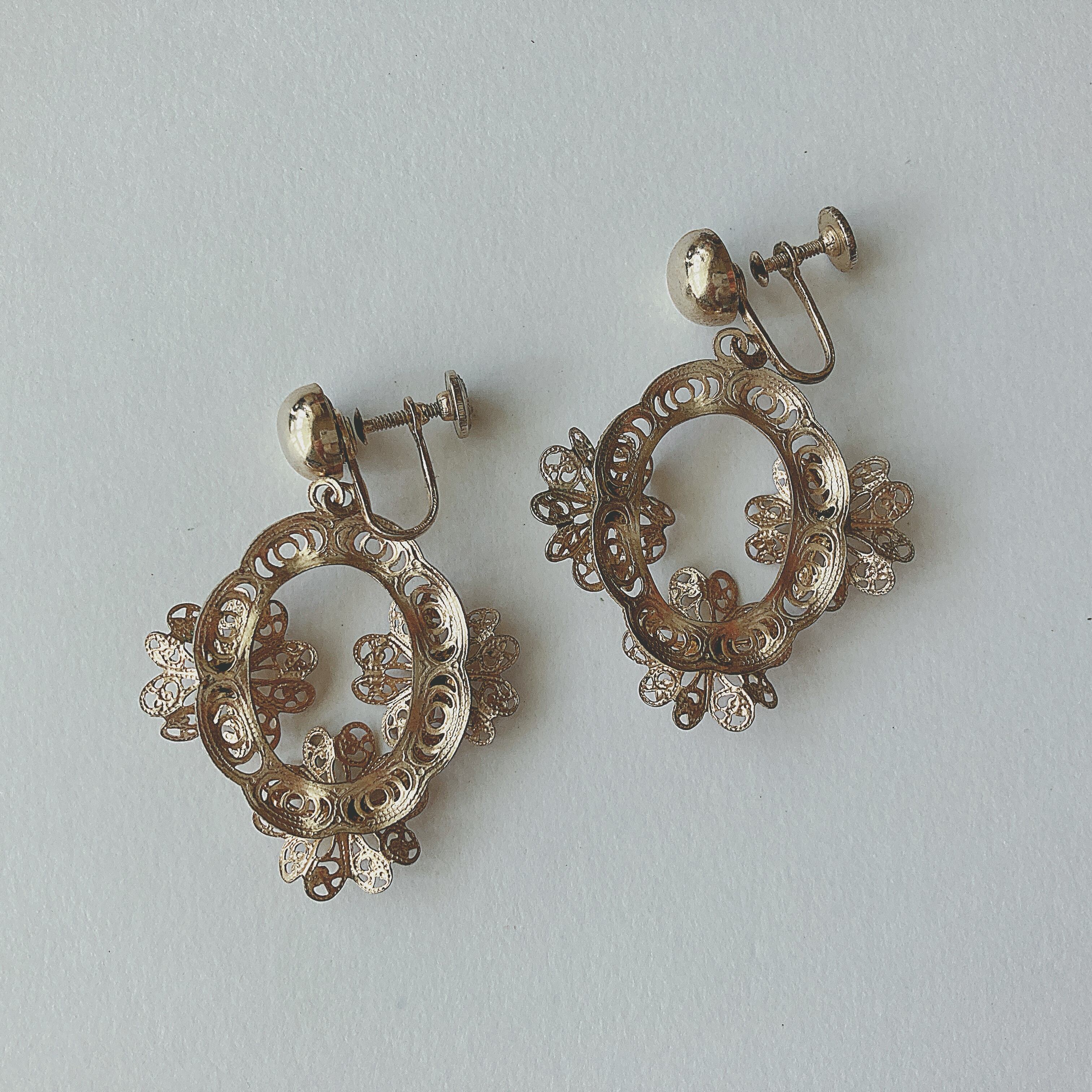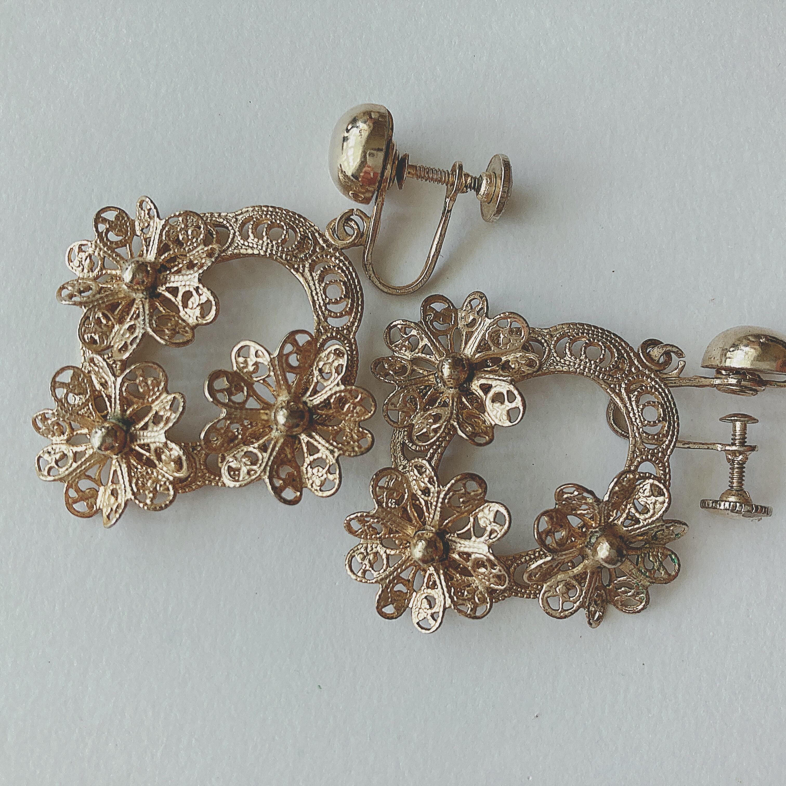 Vintage 50s - 70s gold filigree flower earrings ヴィンテージ 50年代 - 70年代 ゴールドトーン フィリグリー フラワー 花 イヤリング b1303 | OBAKEPEACH
