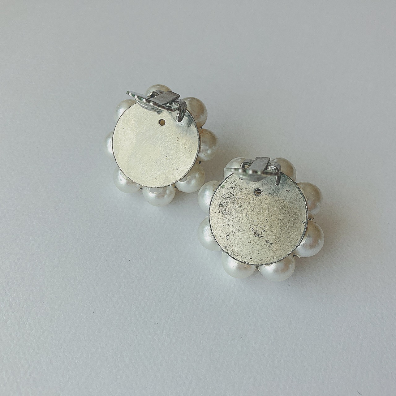 Vintage 50s - 70s faux pearl clear beads cluster earrings ヴィンテージ 50年代 - 70年代 ホワイト フェイクパール クリア ビーズ クラスター イヤリング b1286