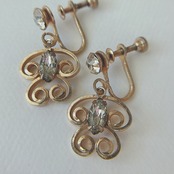 Vintage 50s - 60s gold tone clear glass rhinestone earrings ヴィンテージ 50年代 - 60年代 ゴールドトーン クリア ガラスストーン ラインストーン イヤリング b1288 | OBAKEPEACH