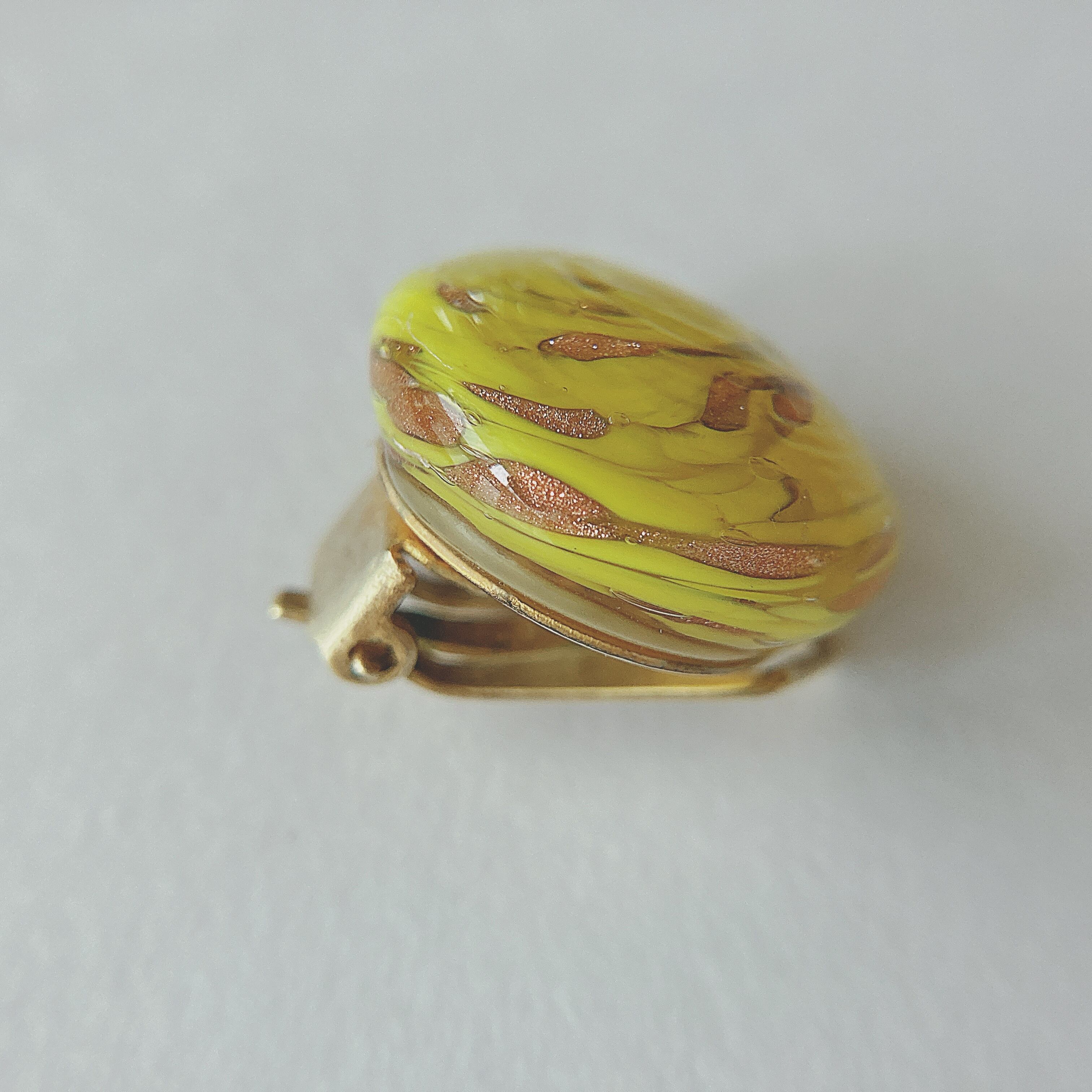 Vintage 50s - 60s Italy venetian murano yellow glass gold foil earrings ヴィンテージ 50年代 - 60年代 イタリア製 ヴェネツィアングラス ムラーノ ムラノ ガラス クリア イエロー ゴールド ラメ イヤリング b1251 | OBAKEPEACH