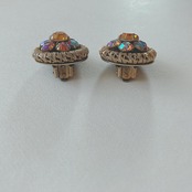 ゴールドメッキの土台にガラスストーンをセットした丸型。