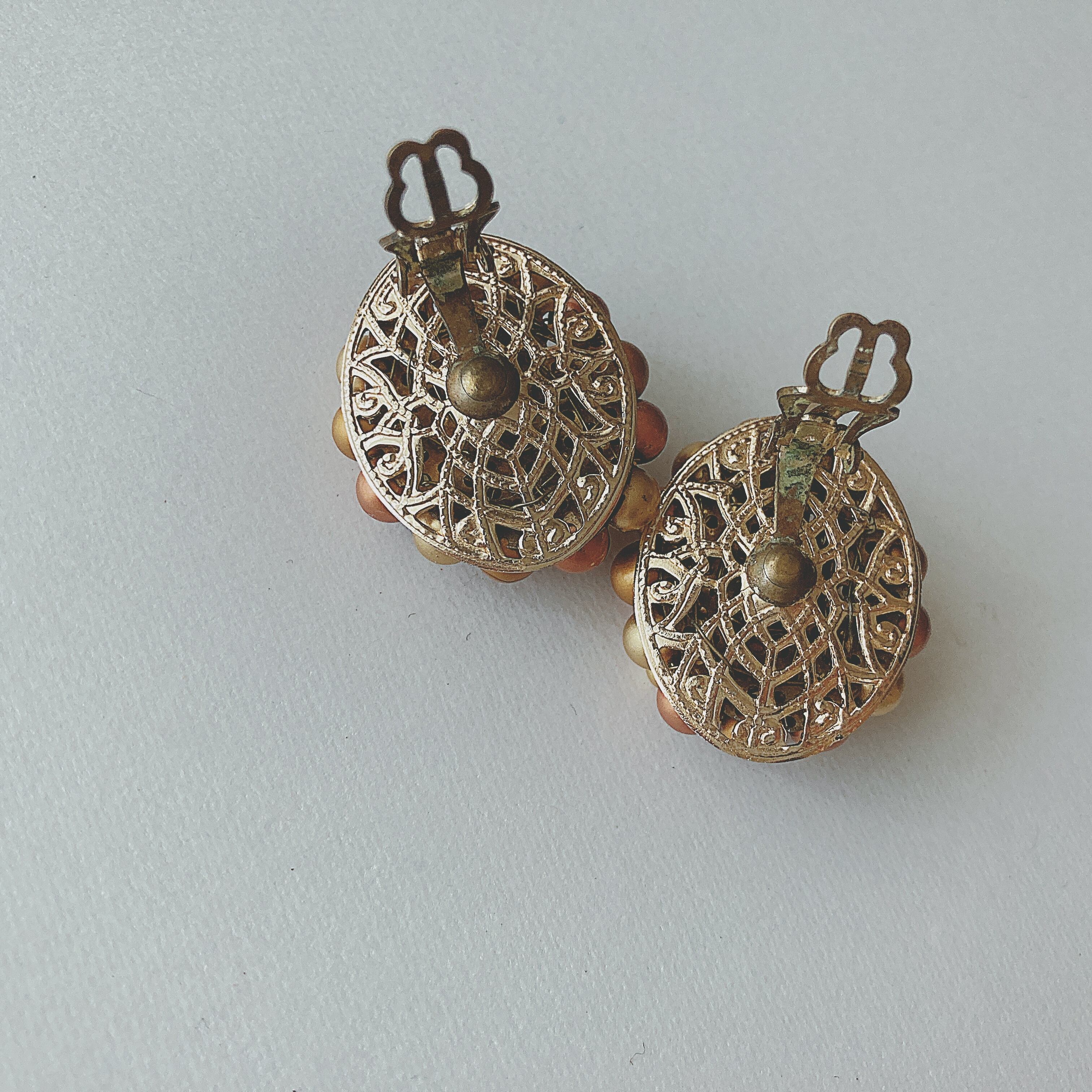 Vintage 50s - 60s JAPAN gold bronze beads cluster earrings ヴィンテージ 50年代 - 60年代 日本製 ゴールド ブロンズ ビーズ クラスター イヤリング b1681 | OBAKEPEACH