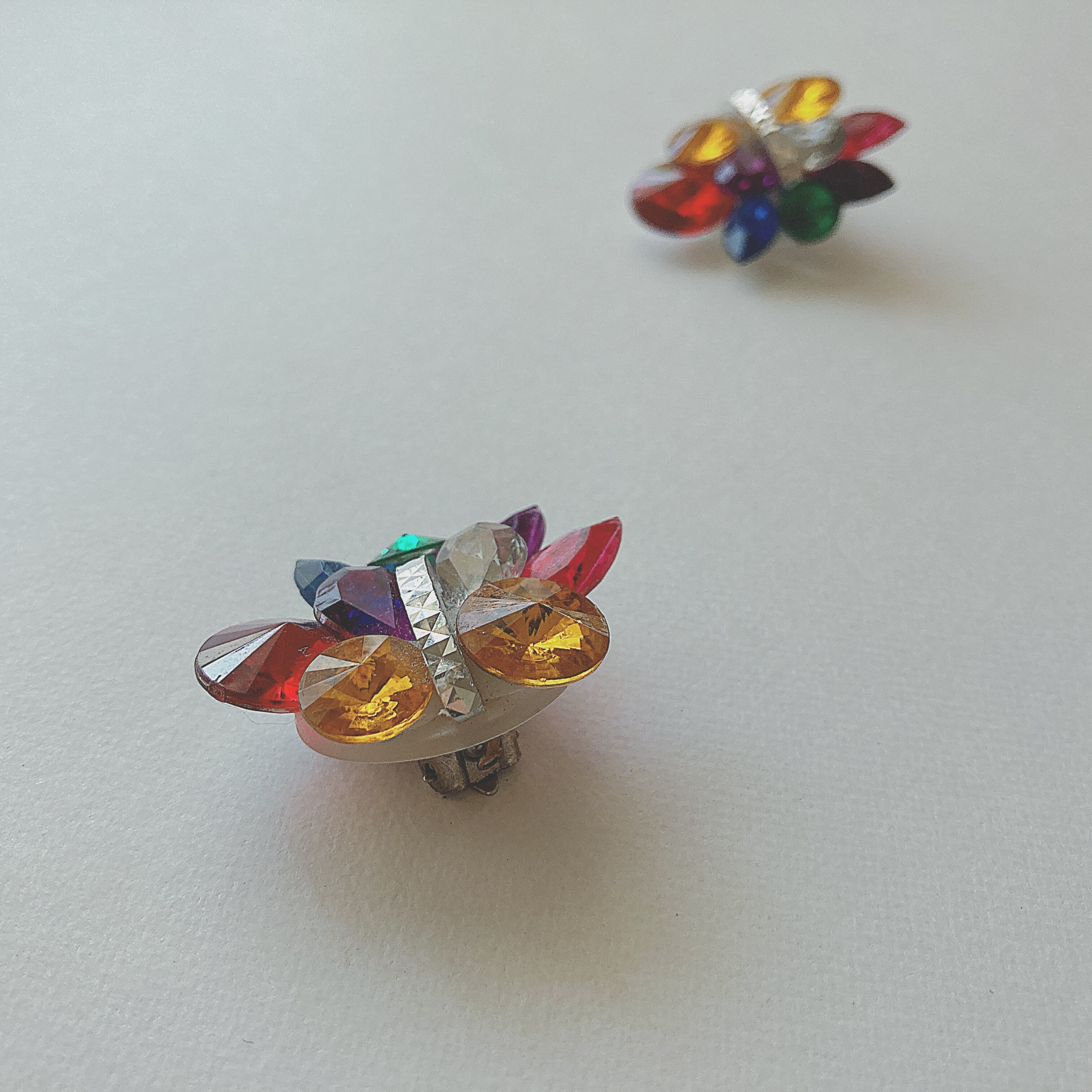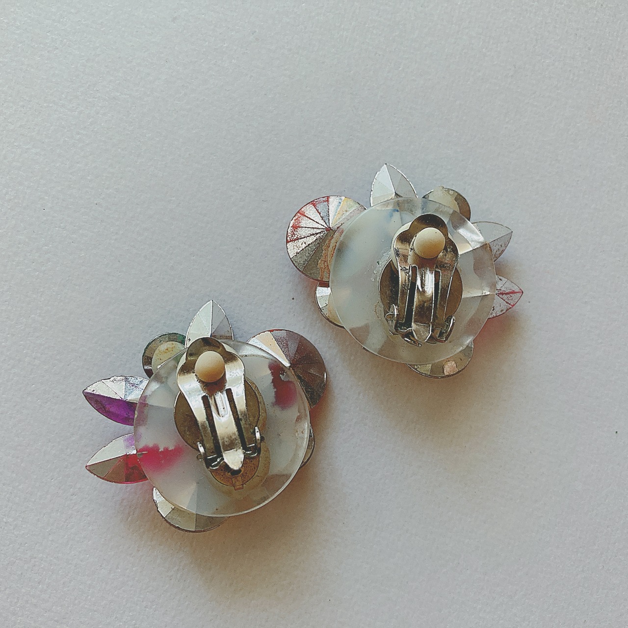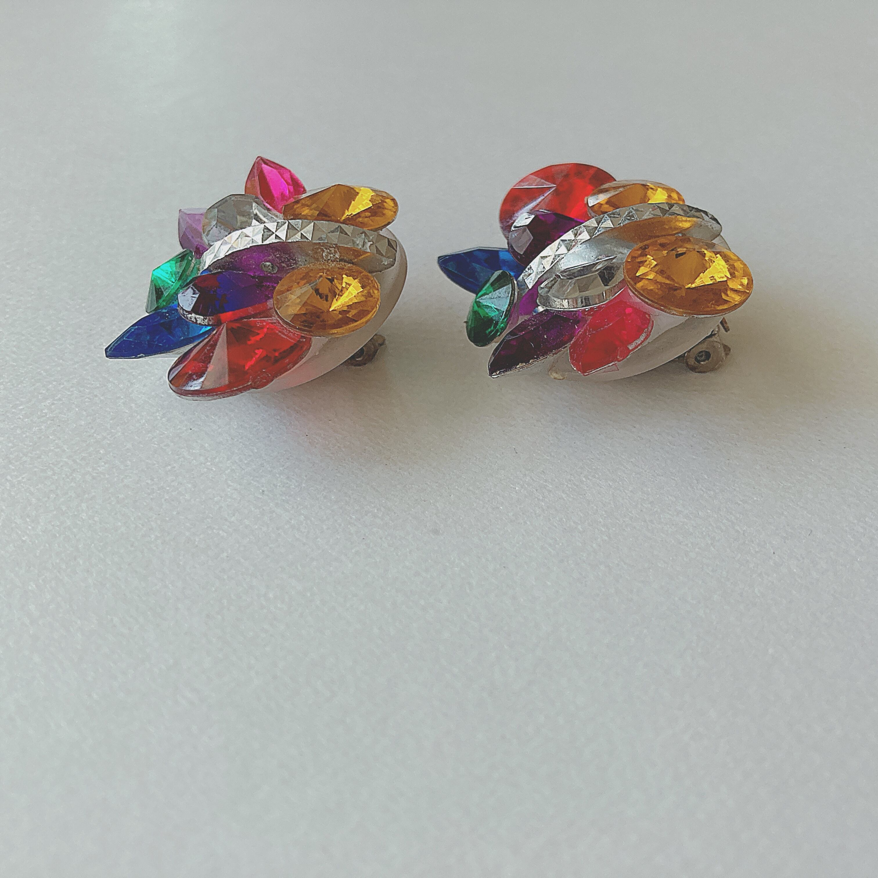 Vintage colorful rainbow plastic rhinestone earrings ヴィンテージ カラフル レインボーカラー プラスチック ラインストーン イヤリング b1505 | OBAKEPEACH