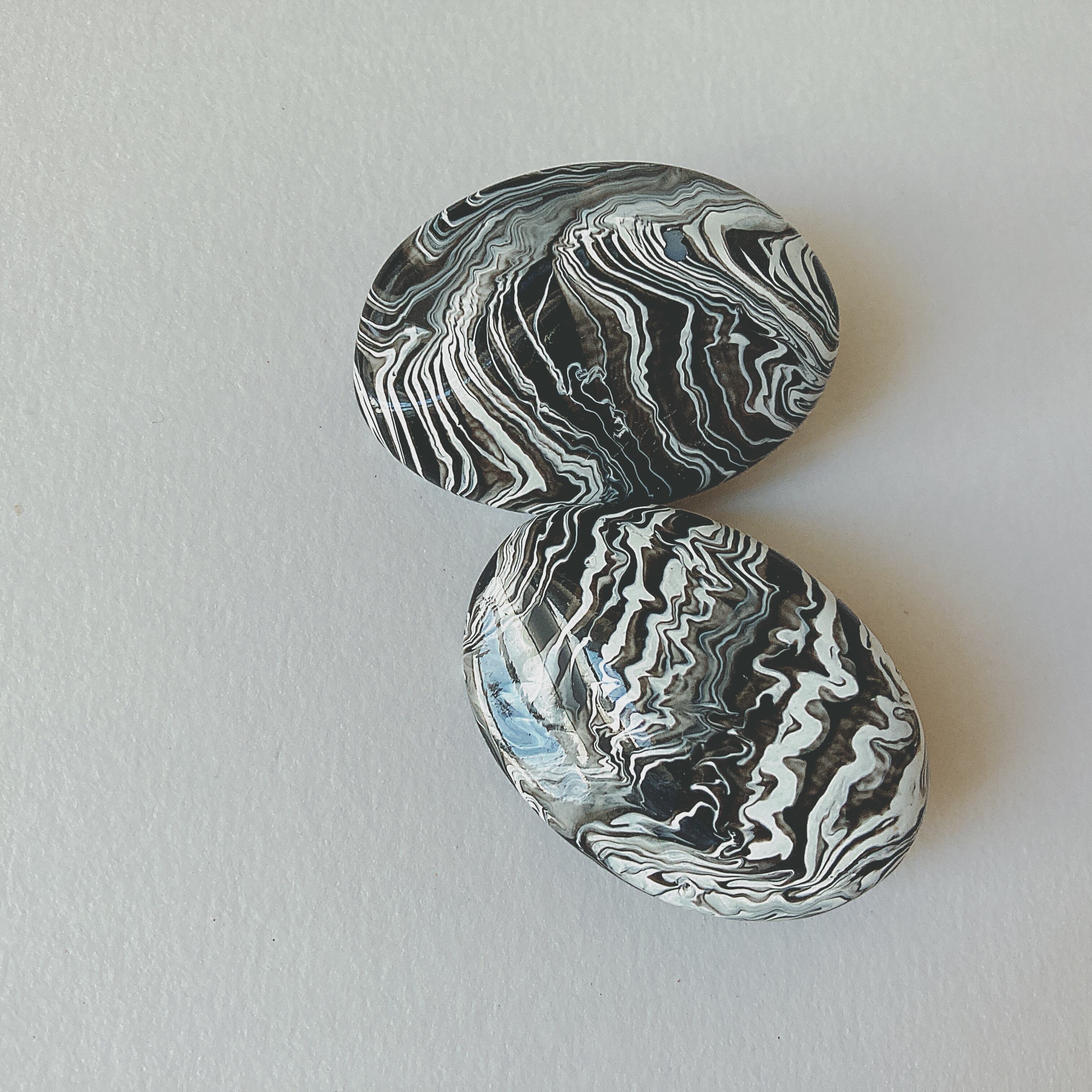 Vintage 80s plastic black white marble oval earrings ヴィンテージ 80年代 プラスチック ブラック ホワイト マーブル模様 オーバル 楕円形 イヤリング b2580 | OBAKEPEACH