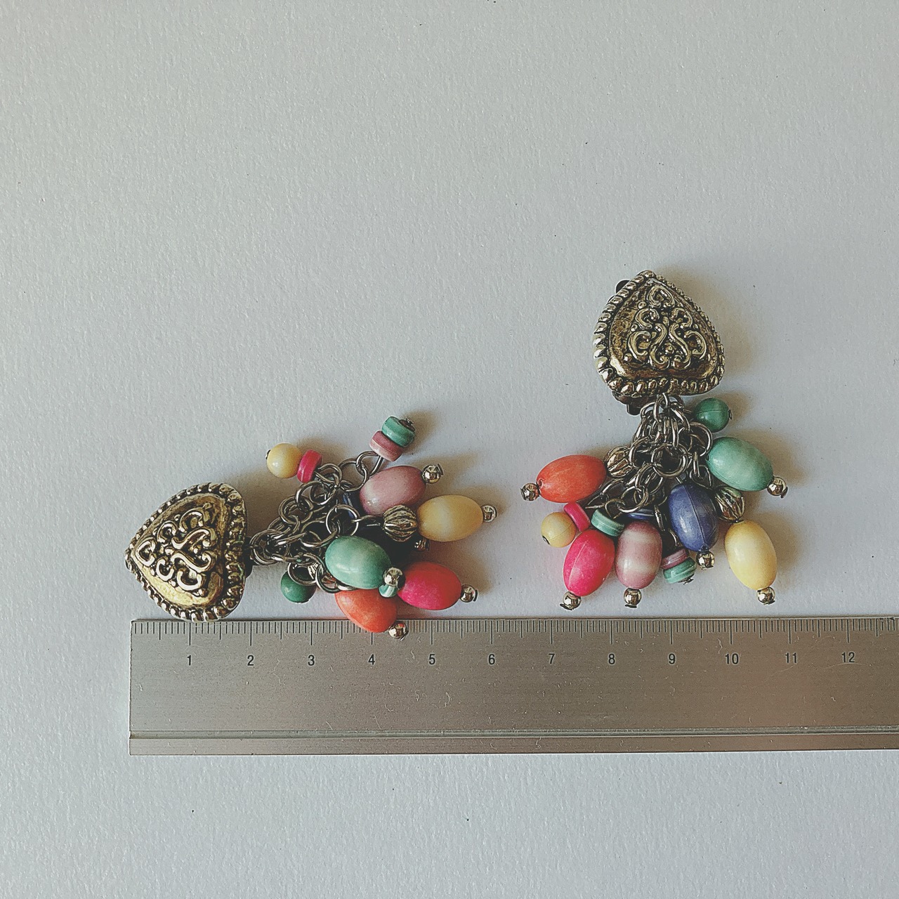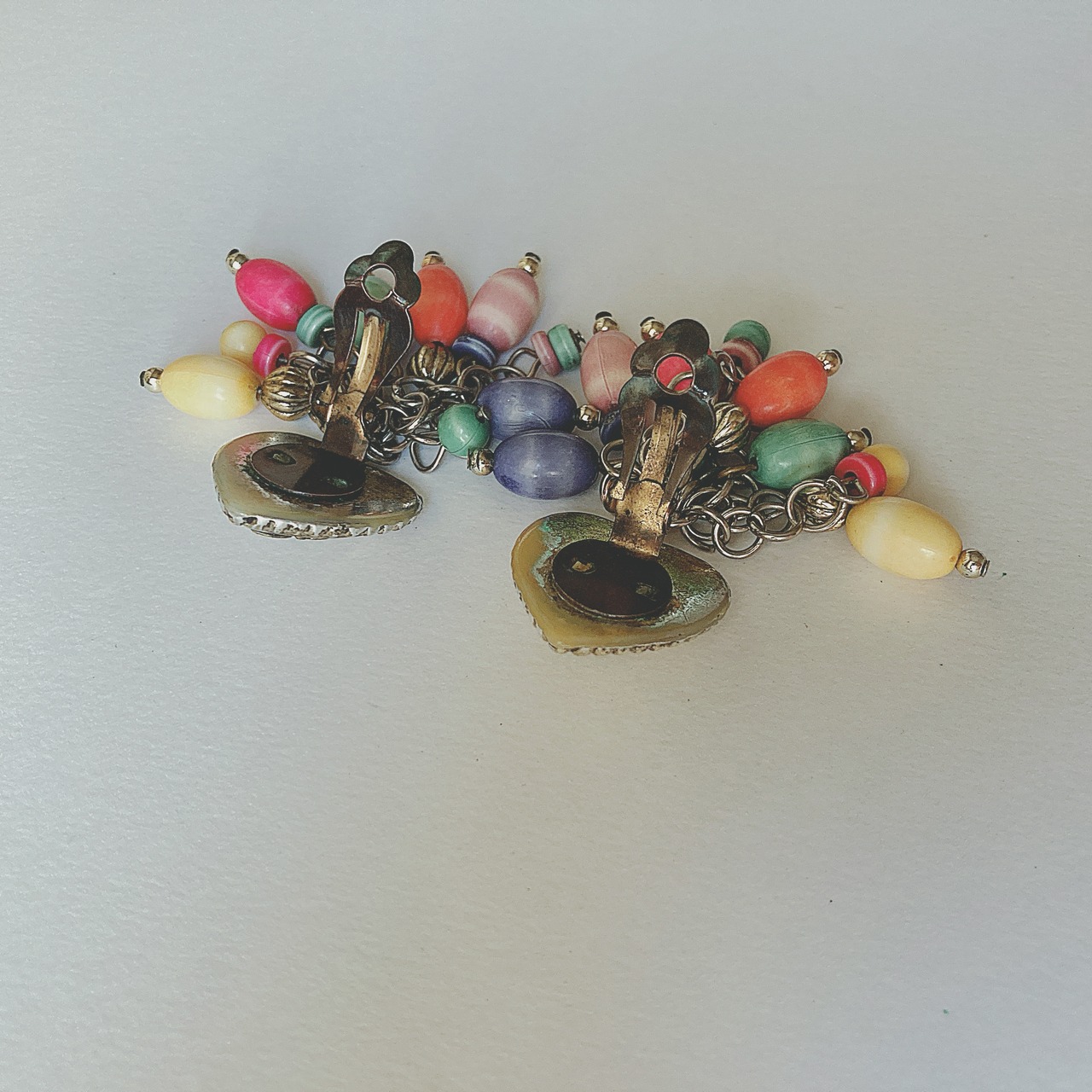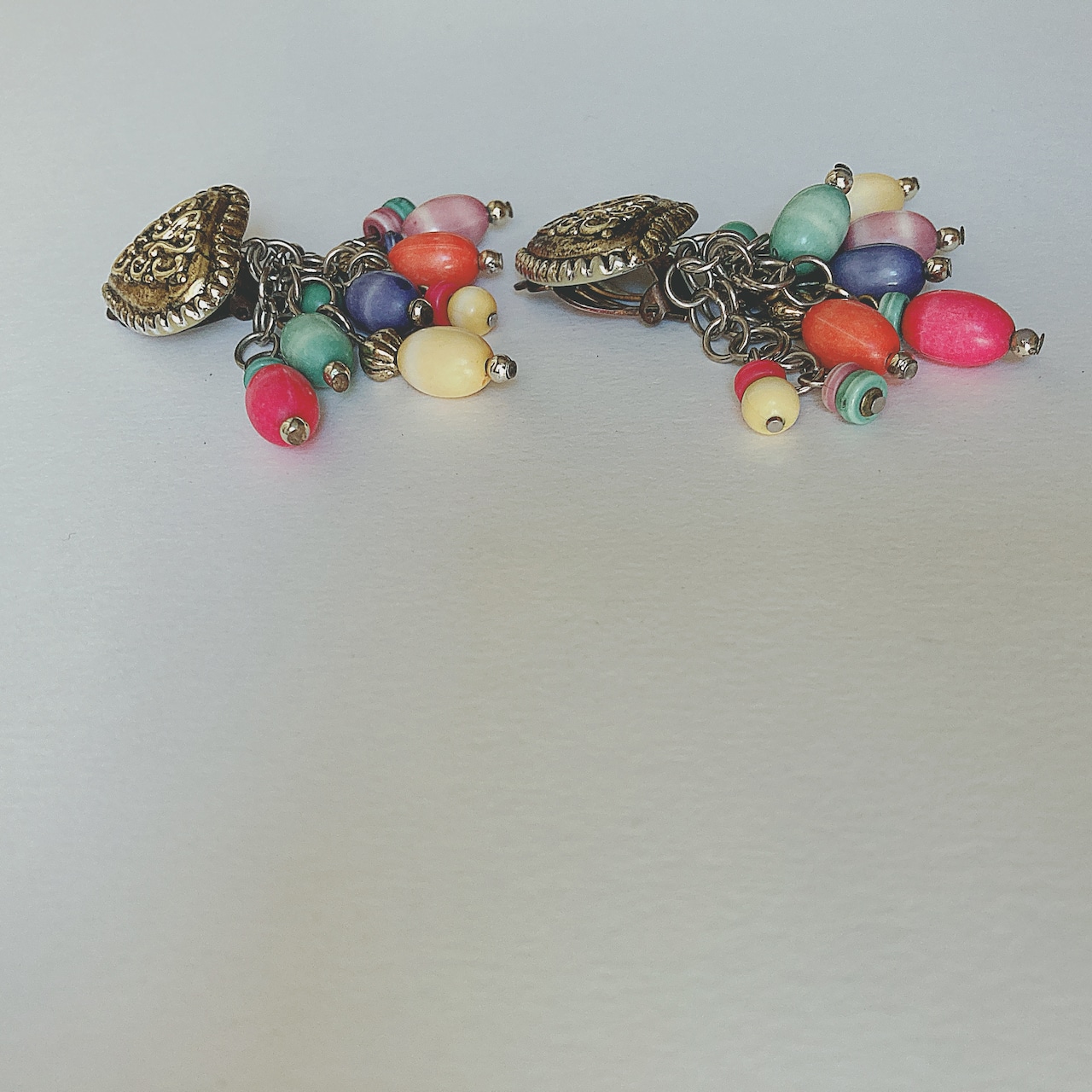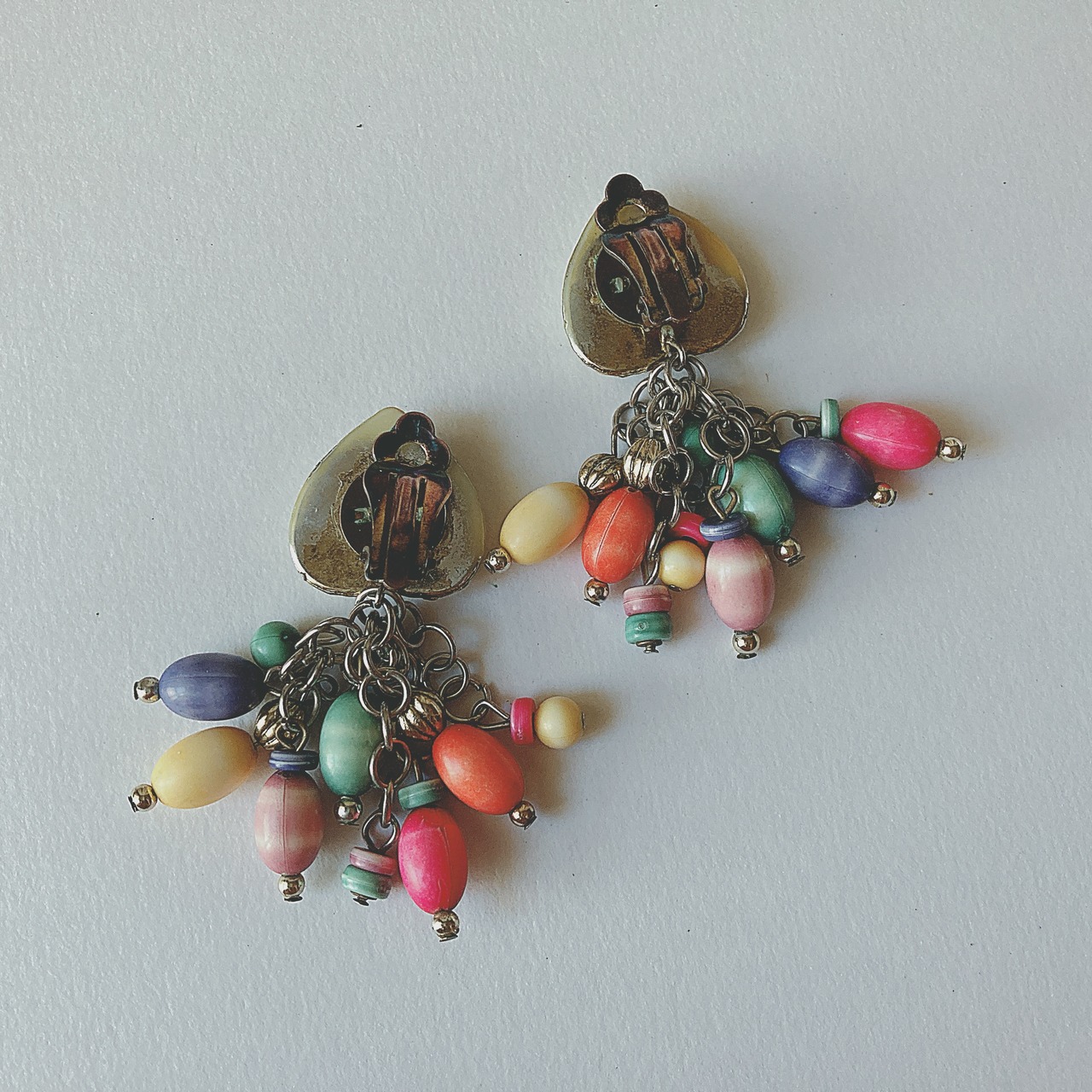 Vintage 80s gold tone colorful plastic beads dangle earrings ヴィンテージ 80年代 ゴールドトーン カラフル プラスチック ビーズ ダングル イヤリング b2568