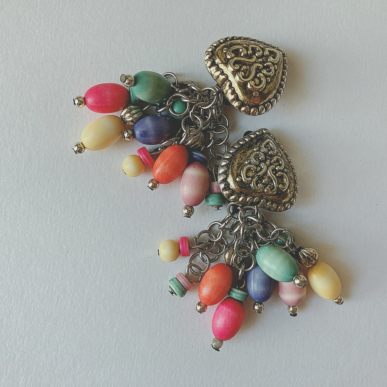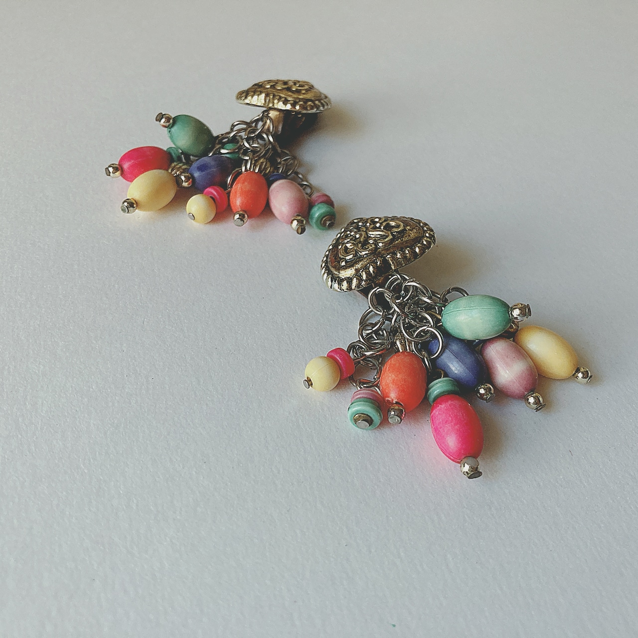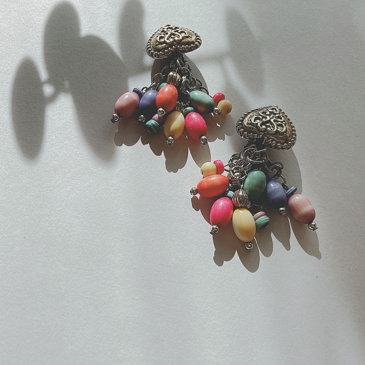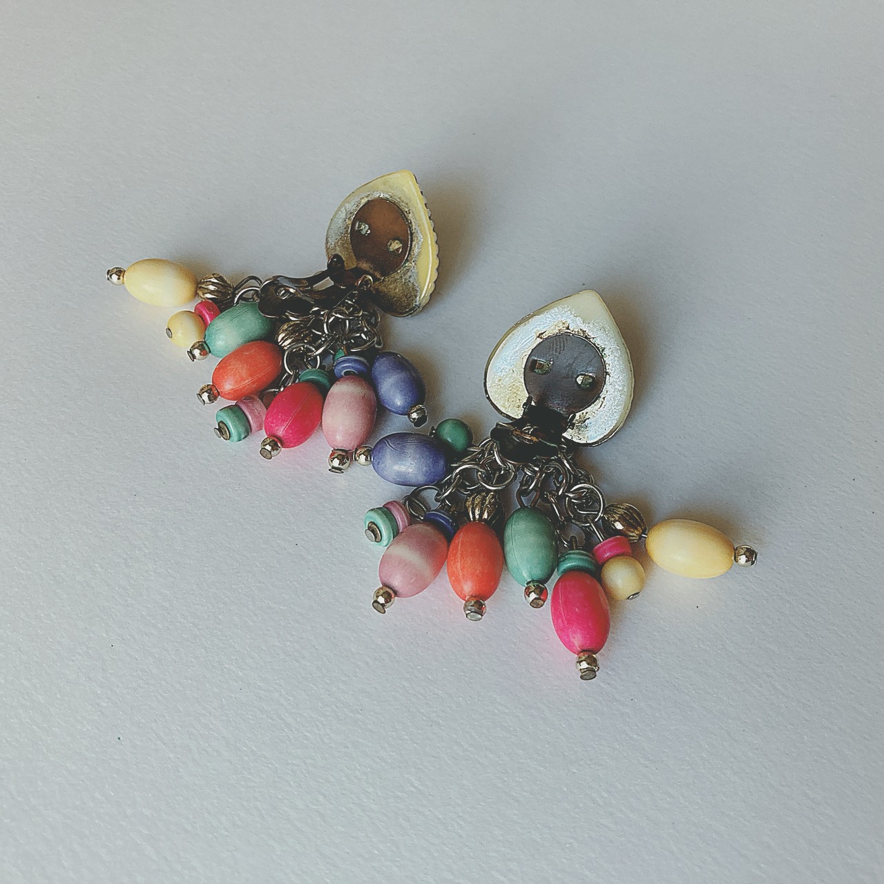 Vintage 80s gold tone colorful plastic beads dangle earrings ヴィンテージ 80年代 ゴールドトーン カラフル プラスチック ビーズ ダングル イヤリング b2568