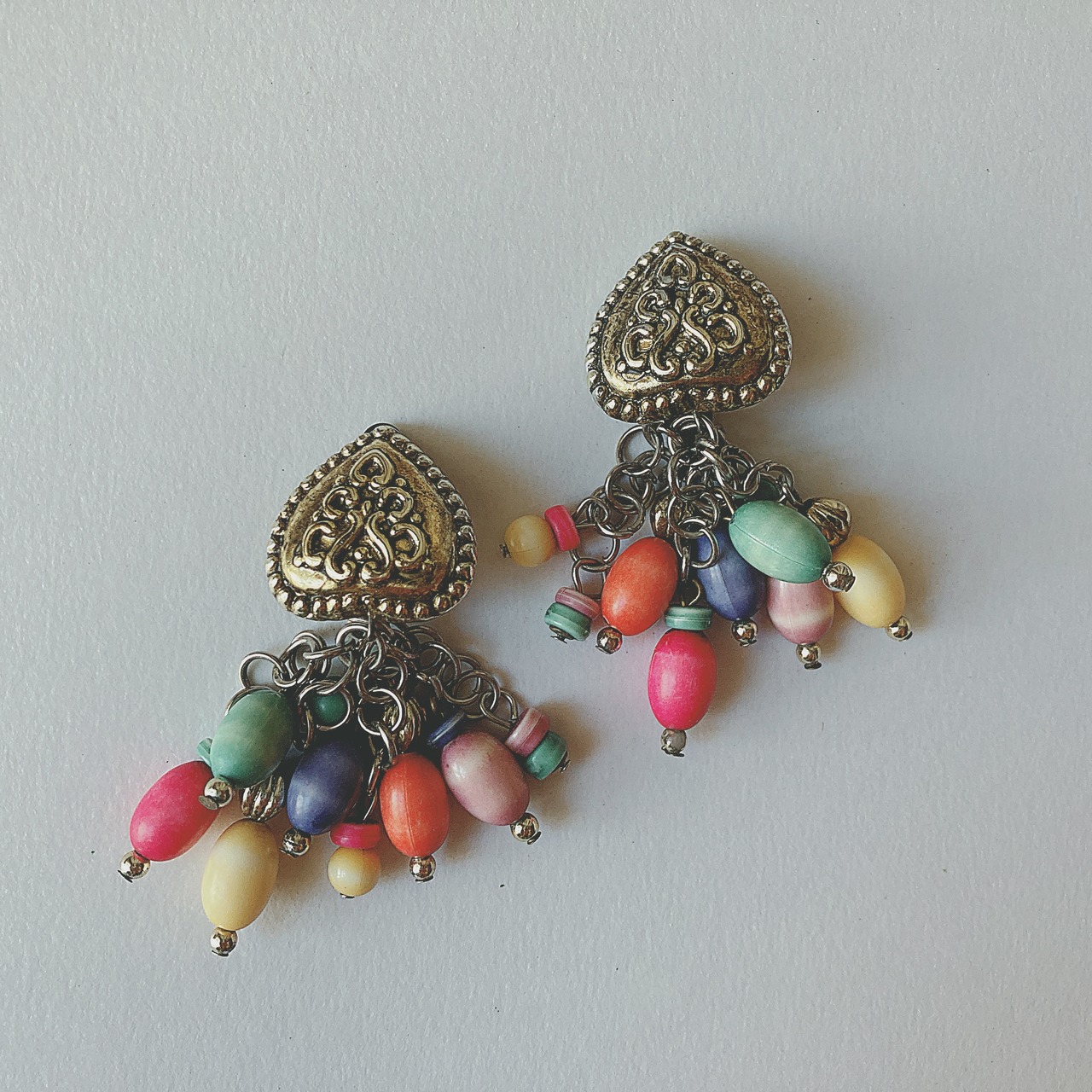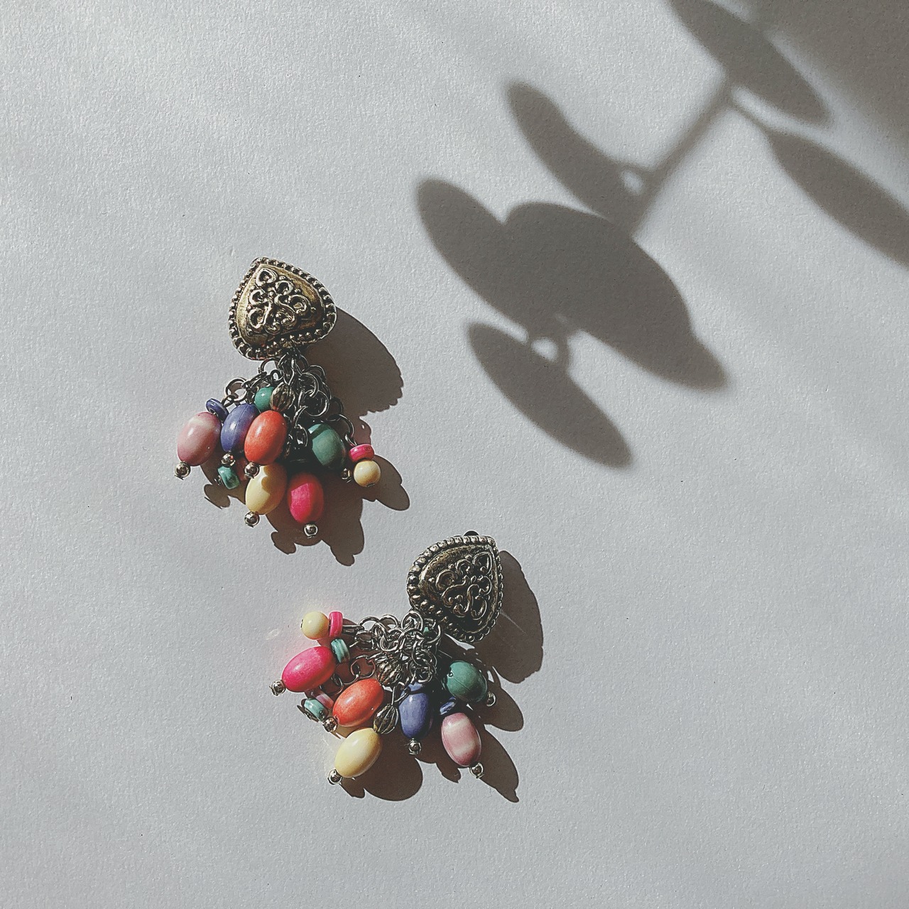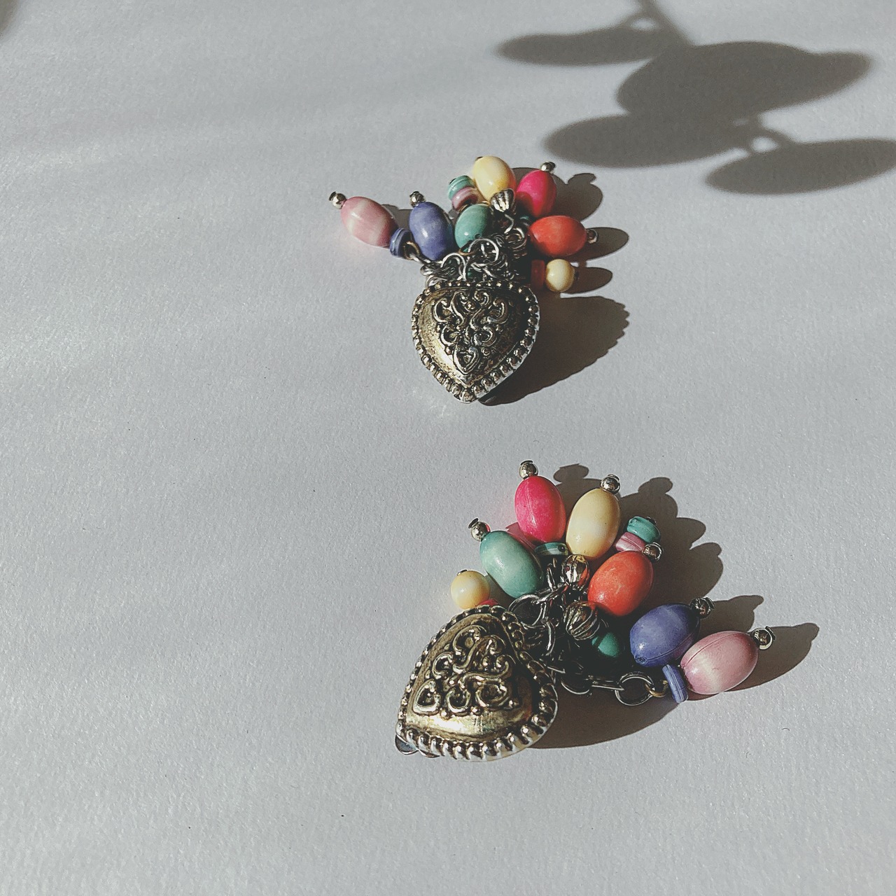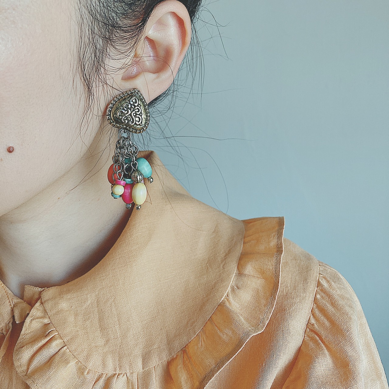 Vintage 80s gold tone colorful plastic beads dangle earrings ヴィンテージ 80年代 ゴールドトーン カラフル プラスチック ビーズ ダングル イヤリング b2568