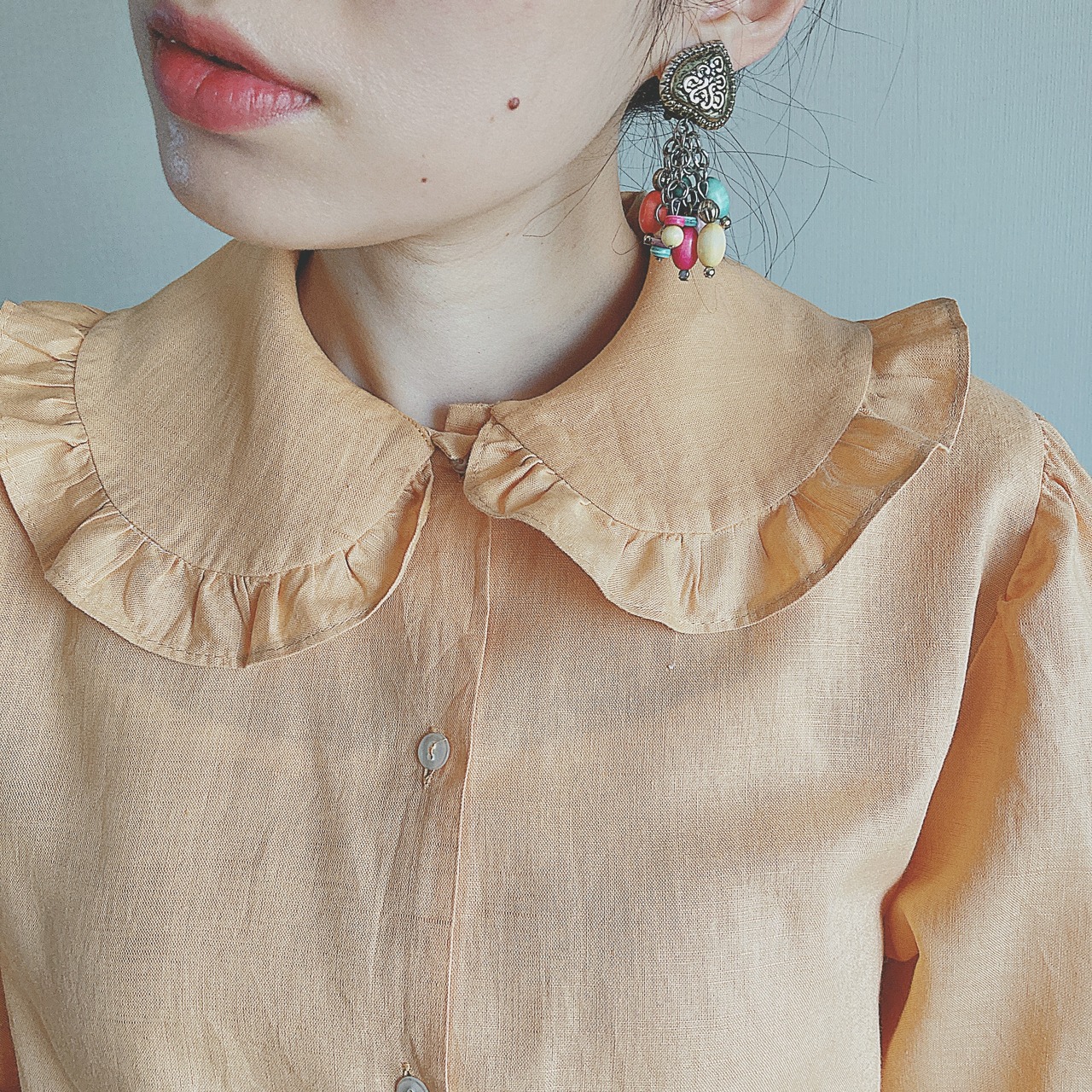 ゴールドメタルとプラスチックビーズのダングルタイプ。