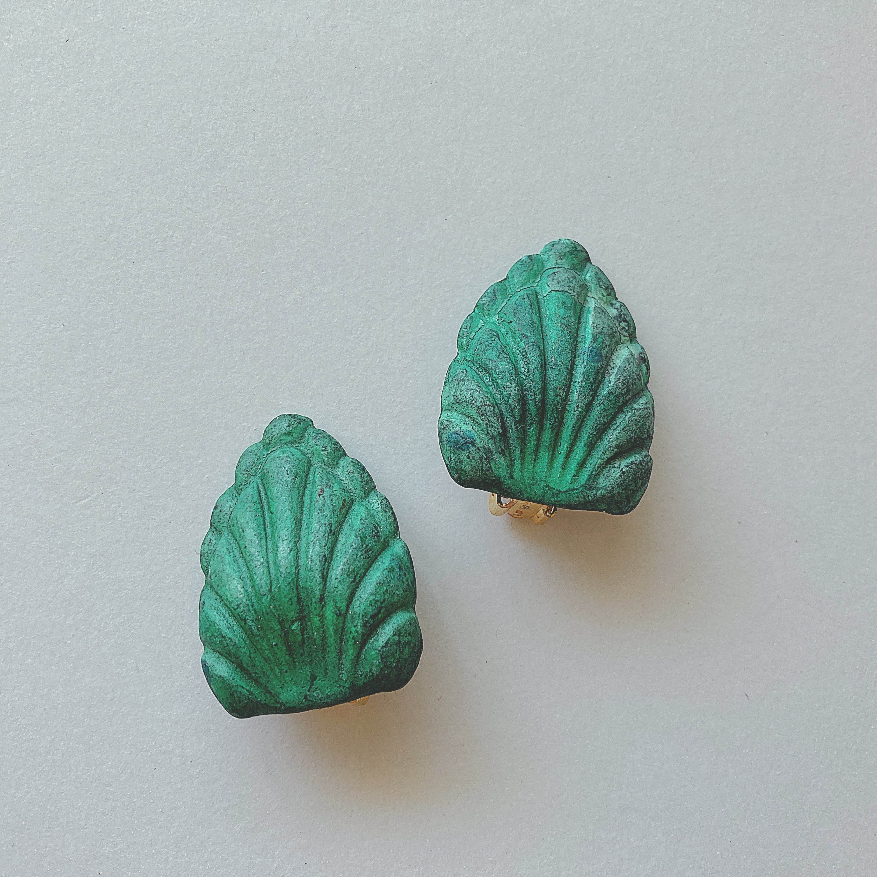 グリーンの貝殻のようなデザイン。