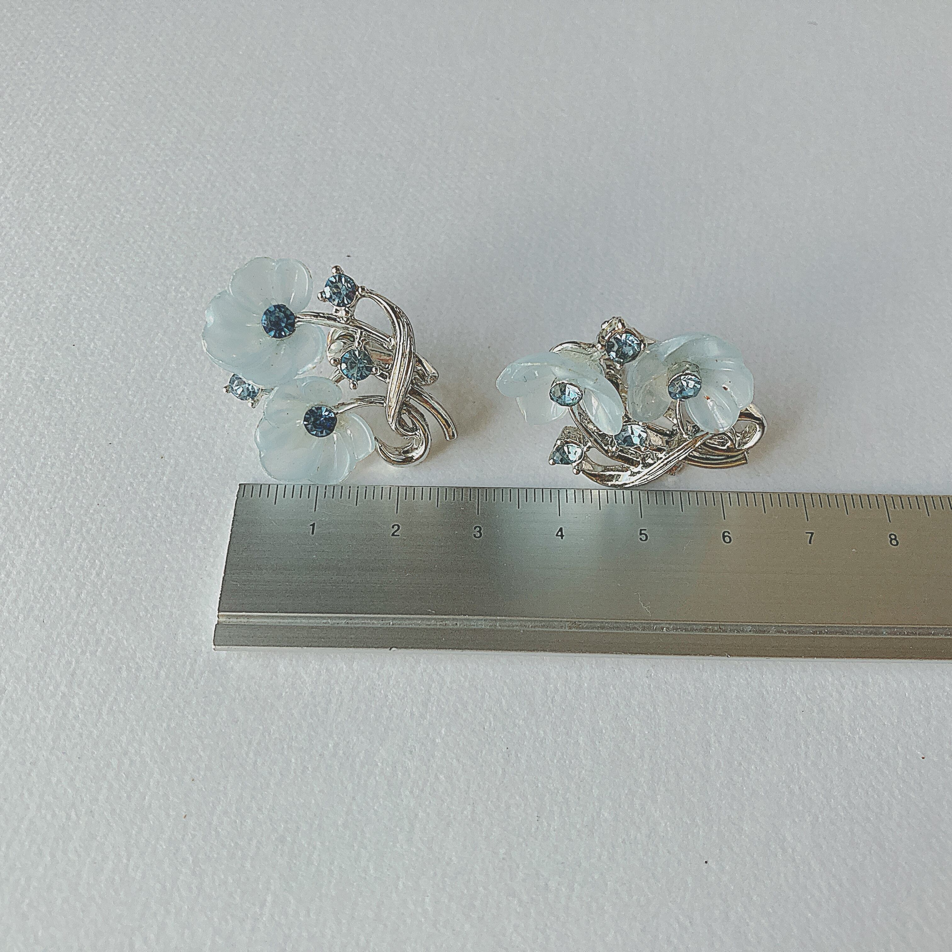 STAR Vintage silver tone blue plastic rhinestone flower earrings ヴィンテージ シルバートーン ブルー プラスチック ラインストーン フラワー 花 イヤリング