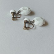 Vintage 50s - 60s JAPAN white milk glass dangle earrings ヴィンテージ 50年代 - 60年代 日本製 ホワイト ミルクガラス ダングル イヤリング b2546 | OBAKEPEACH
