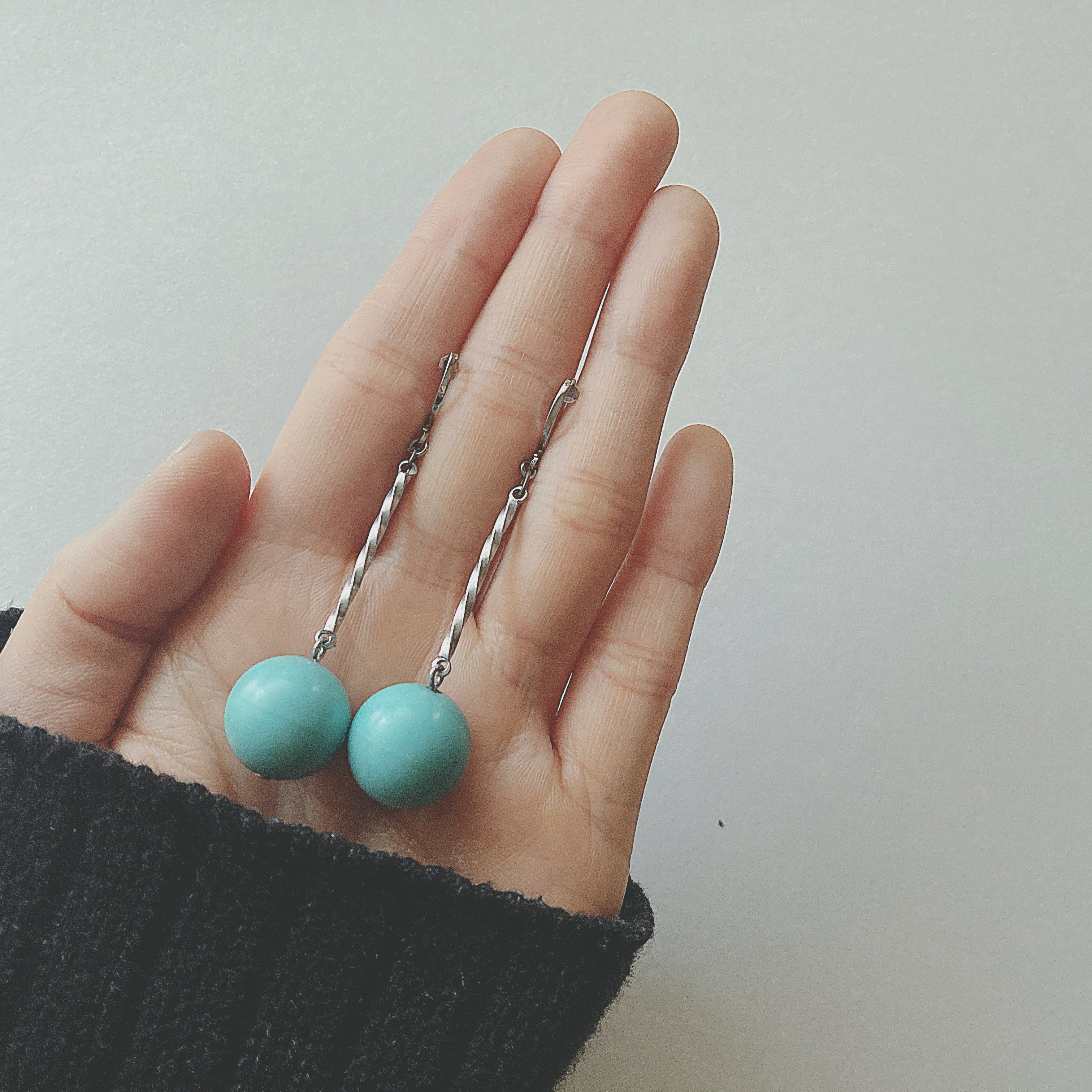 Vintage silver tone blue plastic beads dangle earrings ヴィンテージ シルバートーン ブルー プラスチック ビーズ ダングル イヤリング b2485 | OBAKEPEACH