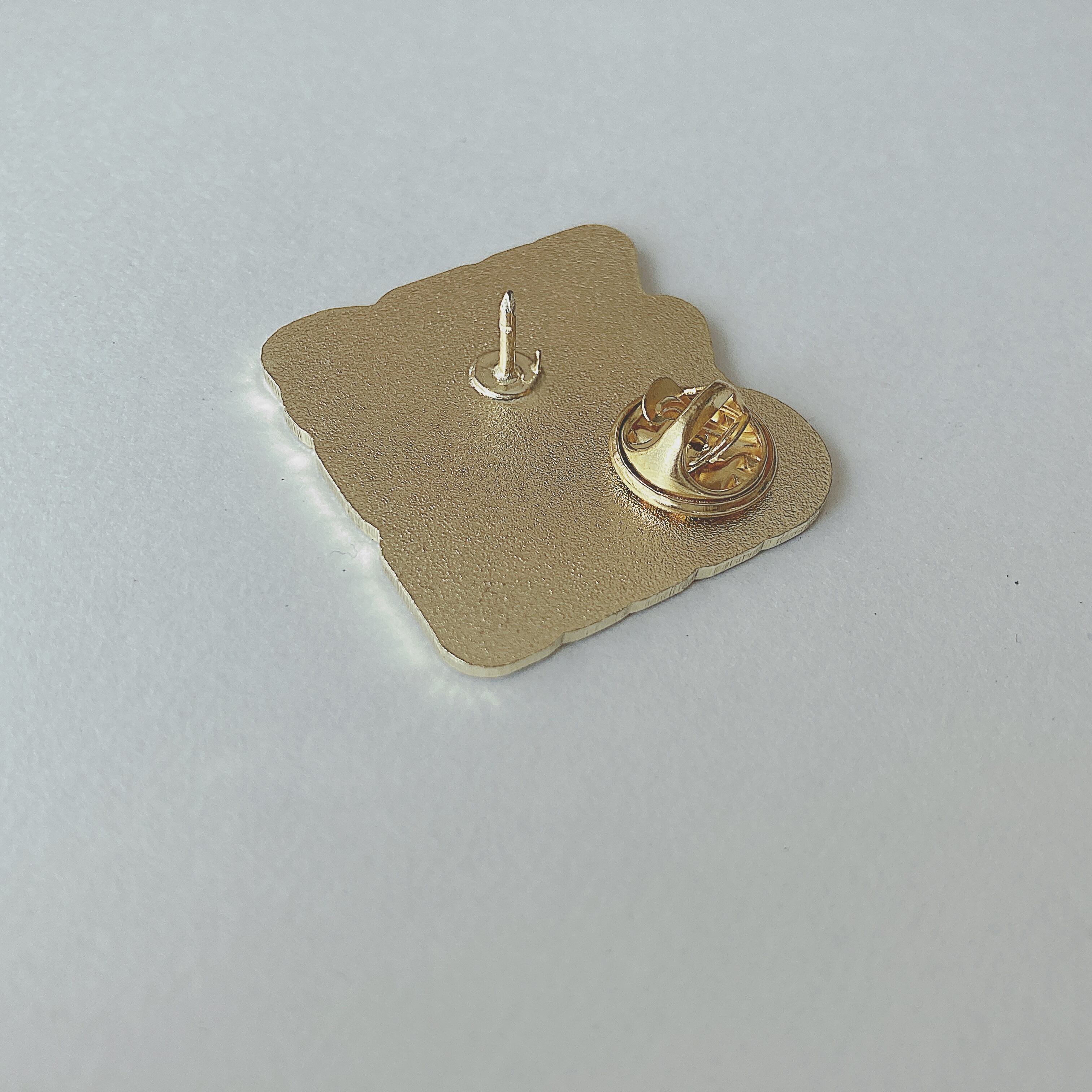 ゴールドメタルの土台にエナメルで色付けしたロゴのデザイン。