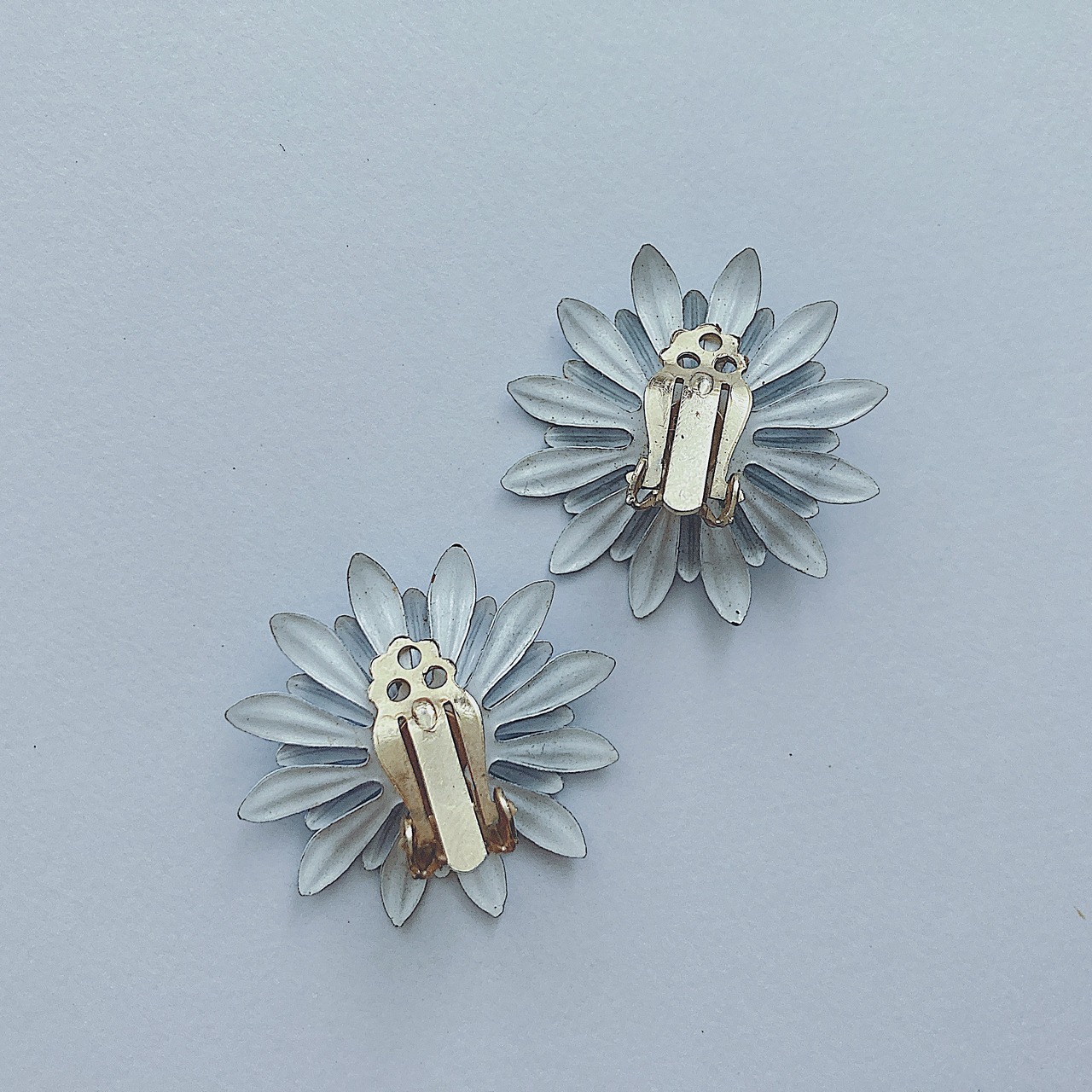 Vintage 60s - 70s blue enamel flower earrings ヴィンテージ 60年代 - 70年代 ブルー エナメル フラワー 花 イヤリング b2354 | OBAKEPEACH