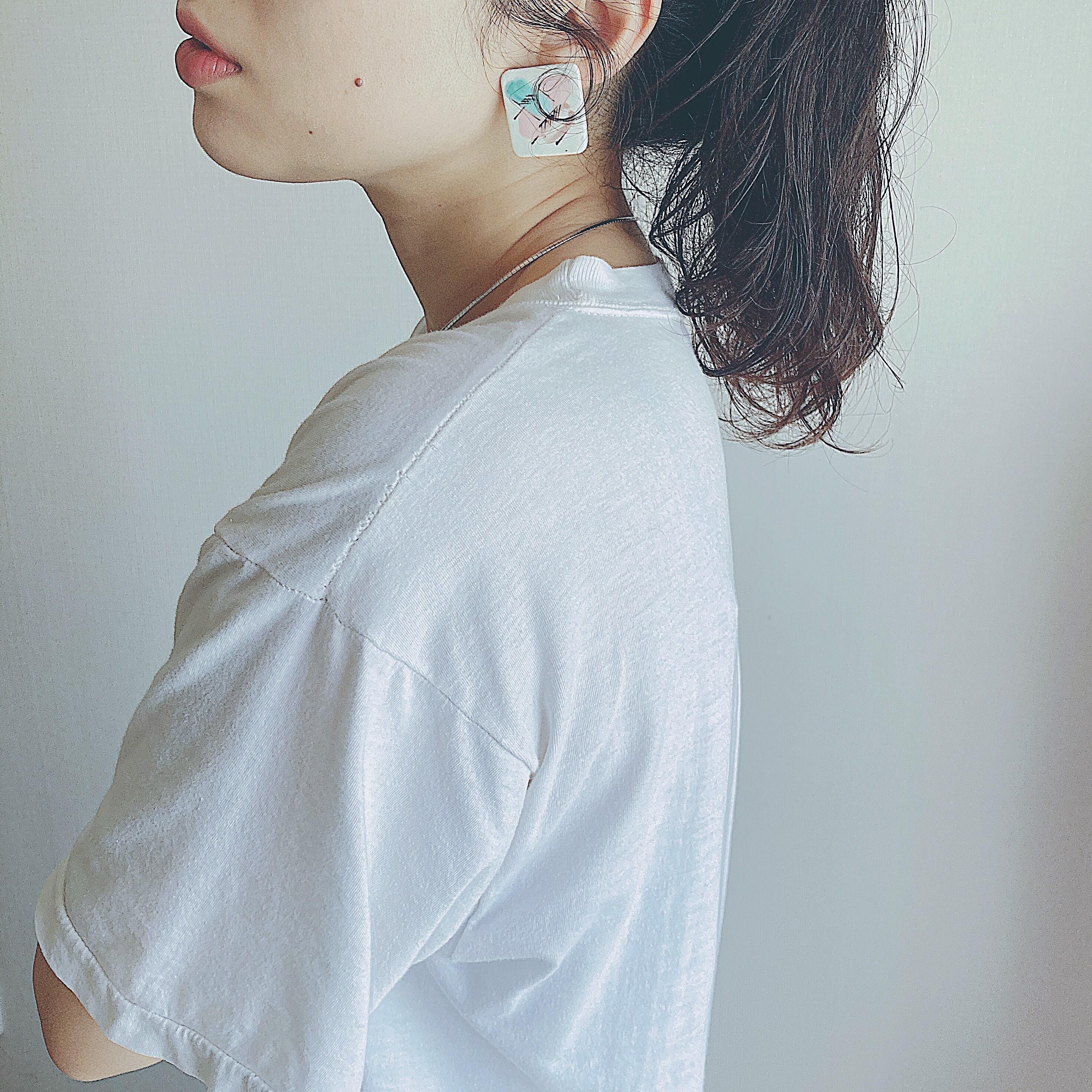 Vintage white ceramic pink green brown paint square earrings ヴィンテージ ホワイト 陶磁器 セラミック ピンク グリーン ブラウン ペイント スクエア 四角形 ピアス b2870