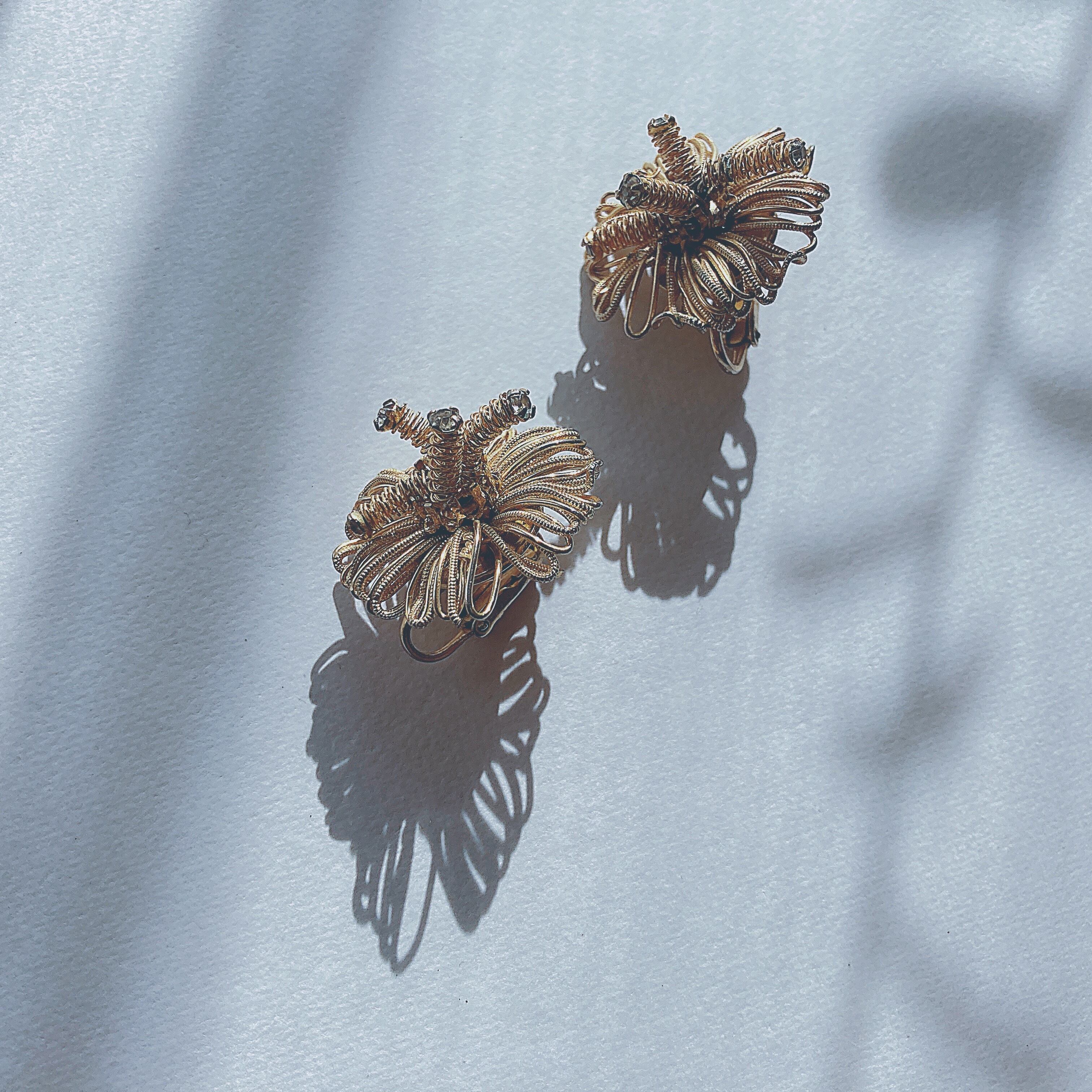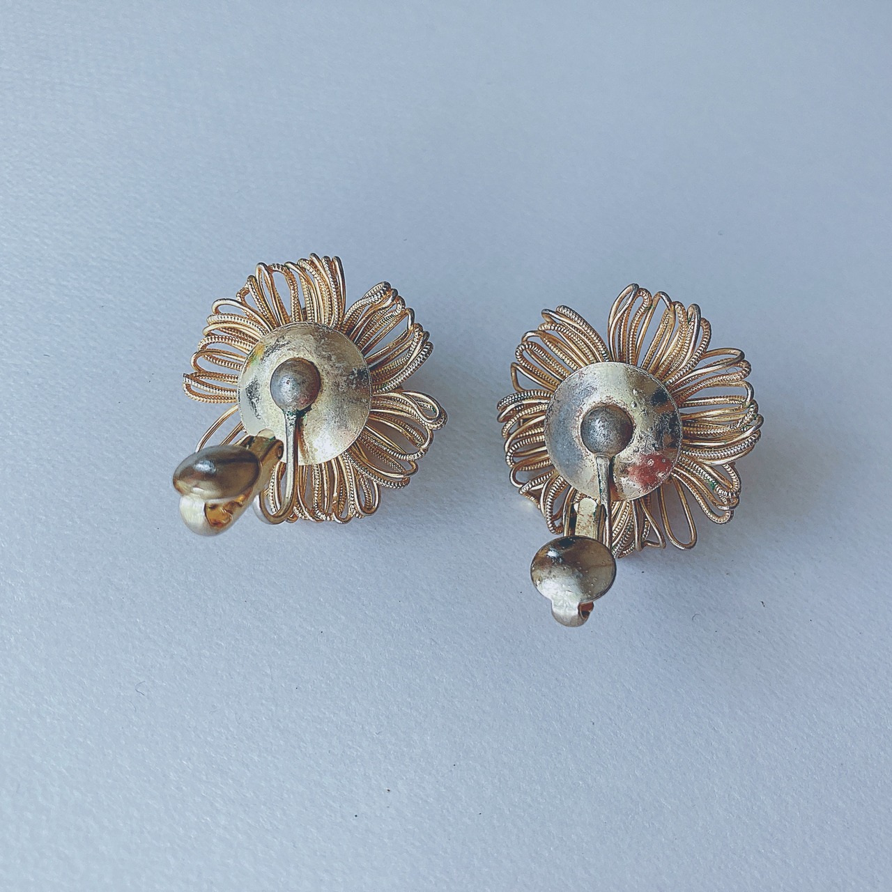 Vintage 50s - 60s gold tone wire flower earrings ヴィンテージ 50年代 - 60年代 ゴールドトーン ワイヤー フラワー 花 イヤリング b2312 | OBAKEPEACH