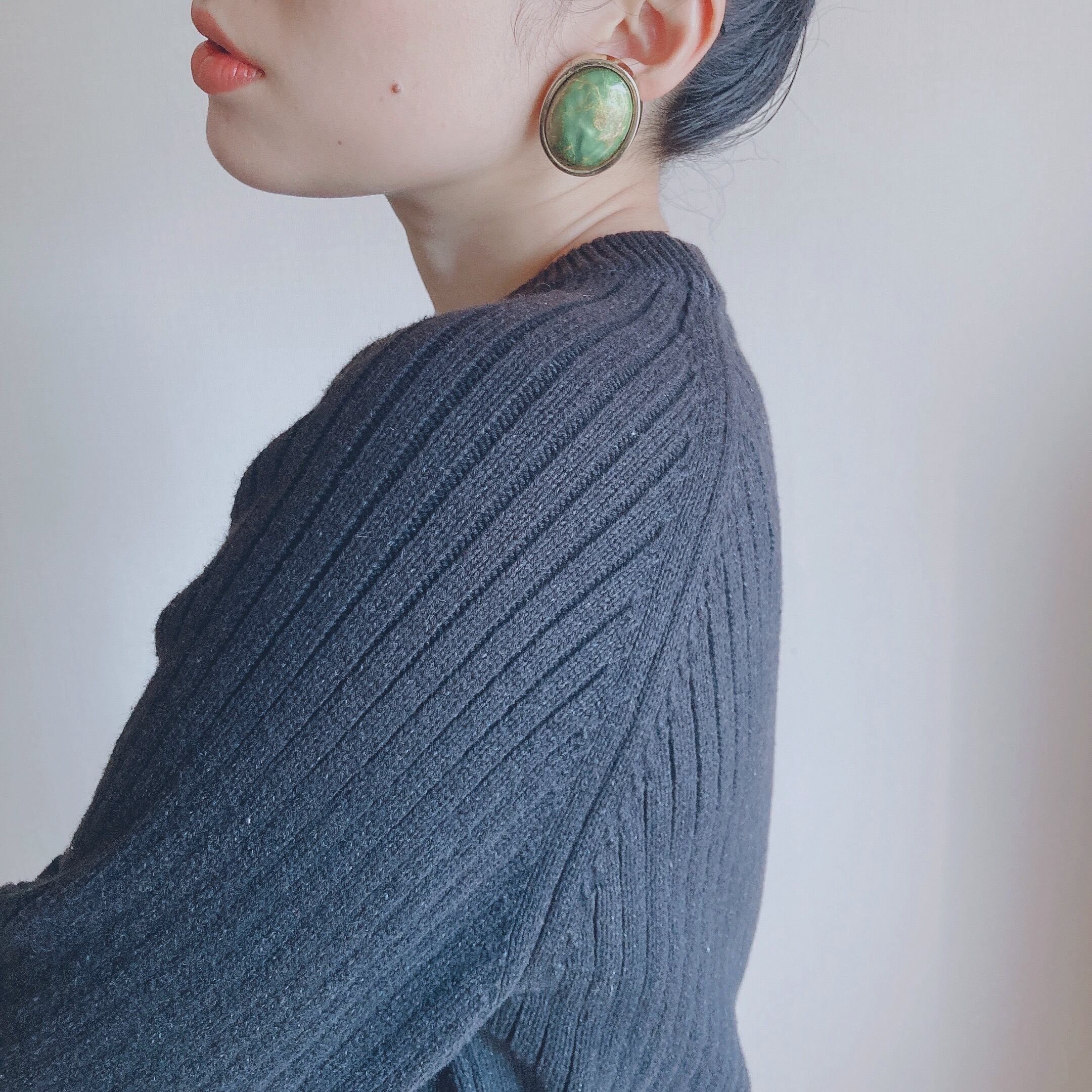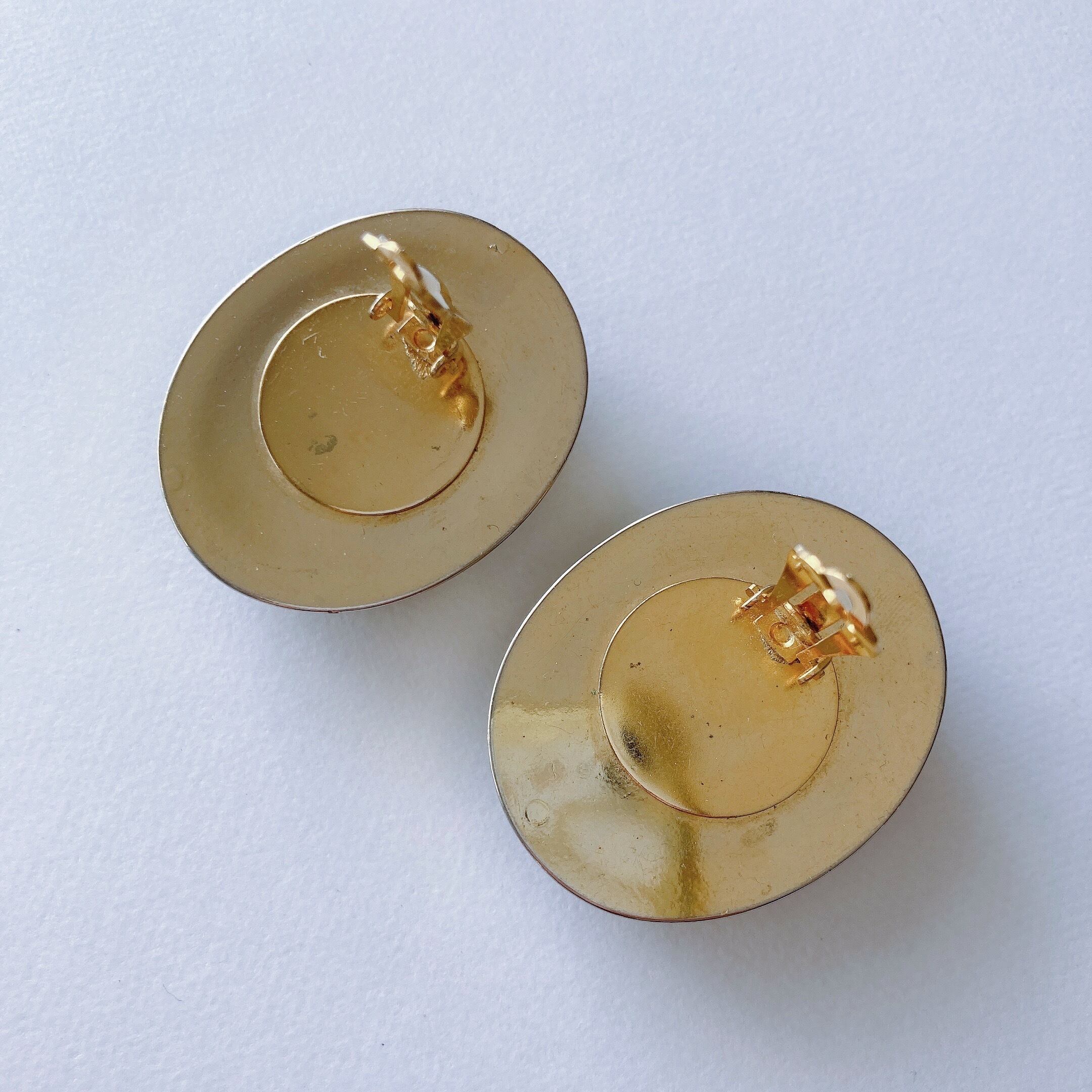 Vintage 80s gold tone green plastic oval earrings ヴィンテージ 80年代 ゴールドトーン グリーン プラスチック オーバル 楕円形 イヤリング b2235 | OBAKEPEACH