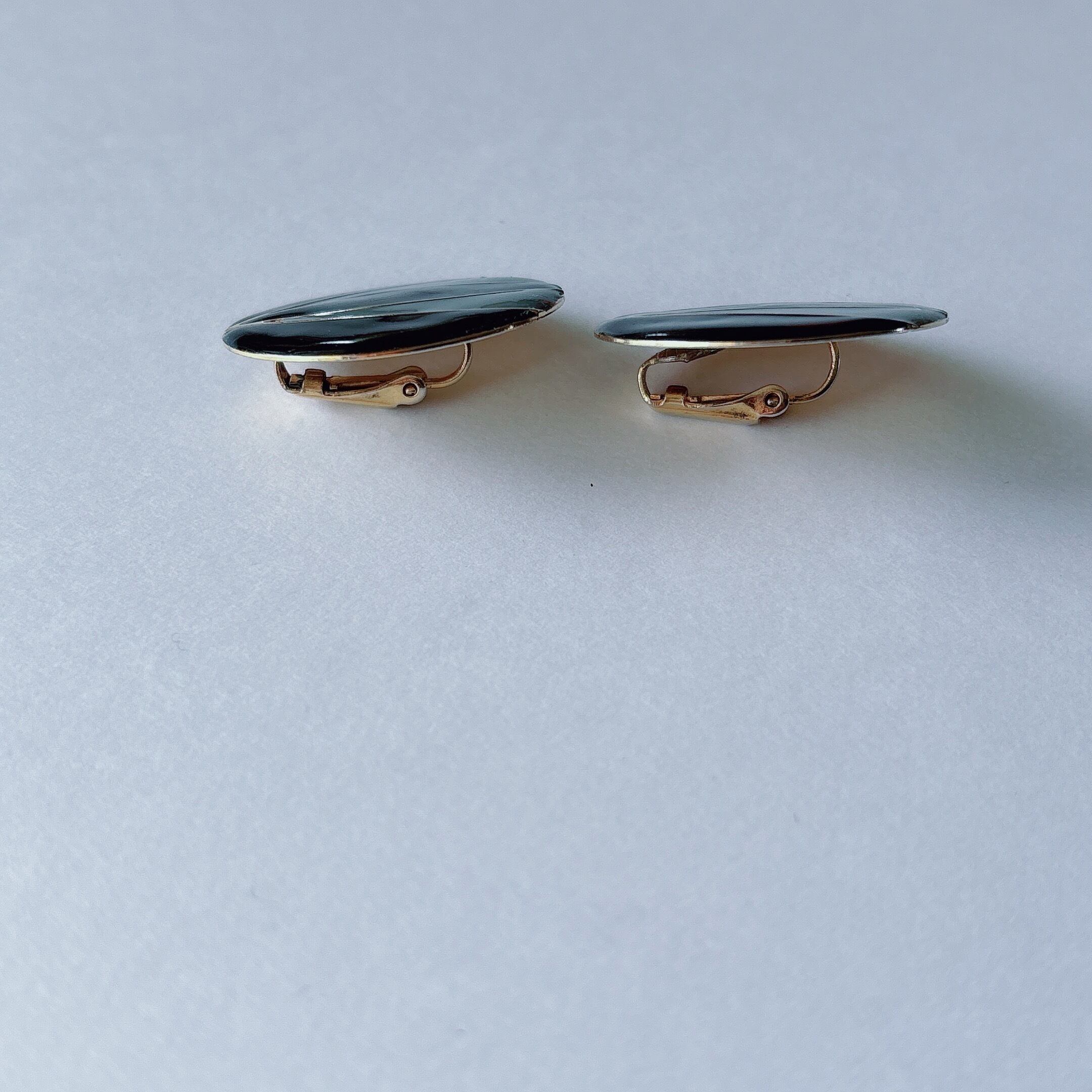 ゴールドメタルの土台にブラック×グレーのエナメルで色付けした丸型。