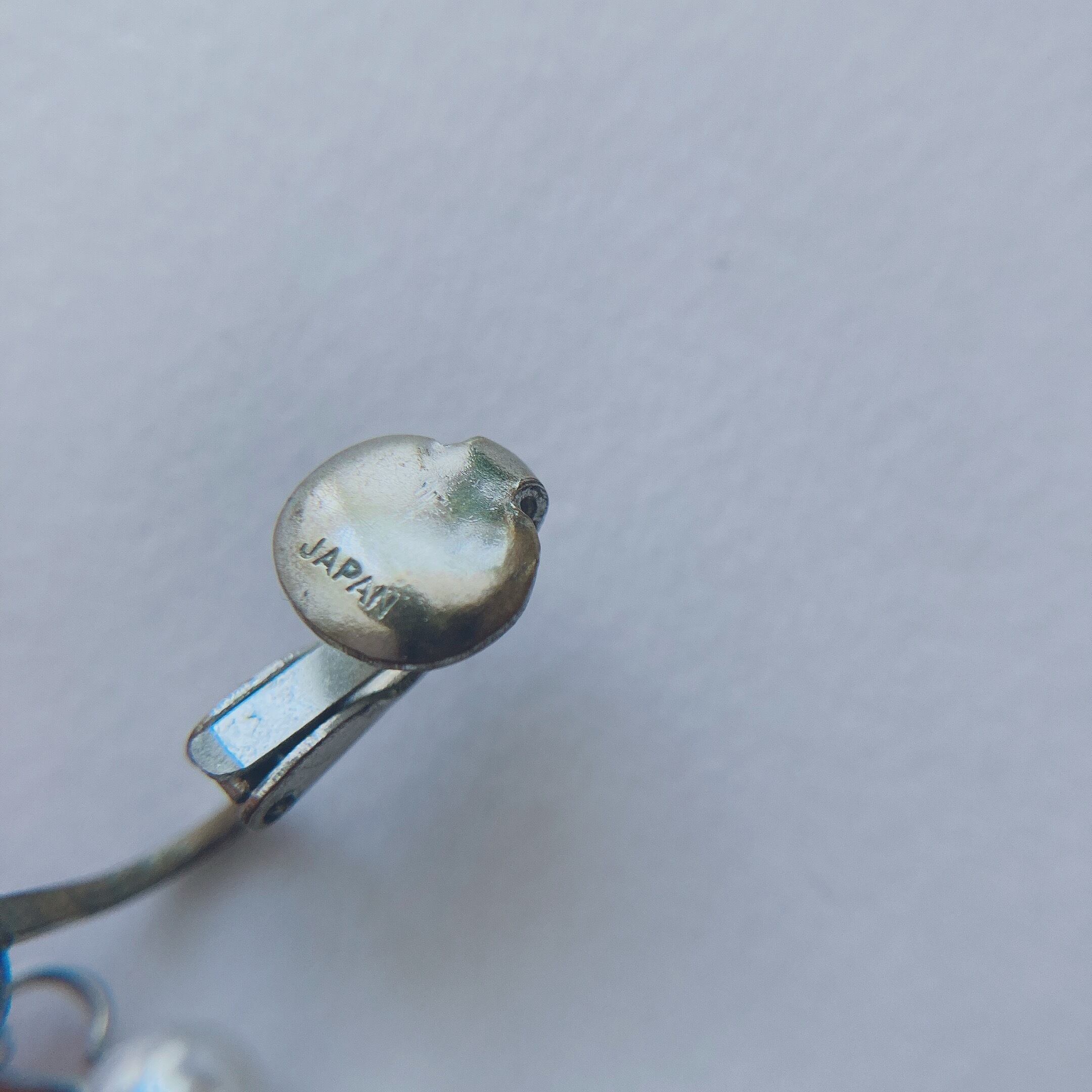 Vintage JAPAN white faux pearl beads dangle earrings ヴィンテージ 日本製 ホワイト フェイクパール ビーズ ダングル イヤリング b2219 | OBAKEPEACH