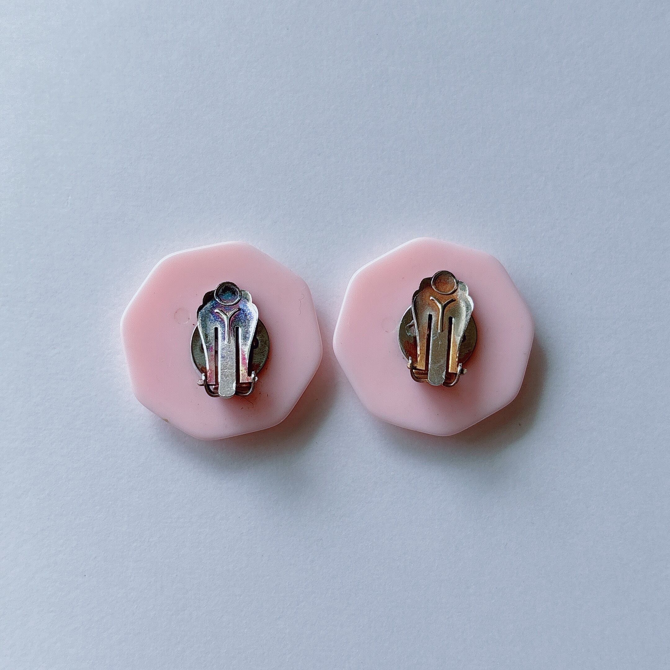 Vintage pink plastic octagon earrings ヴィンテージ ピンク プラスチック オクタゴン 八角形 イヤリング b2216