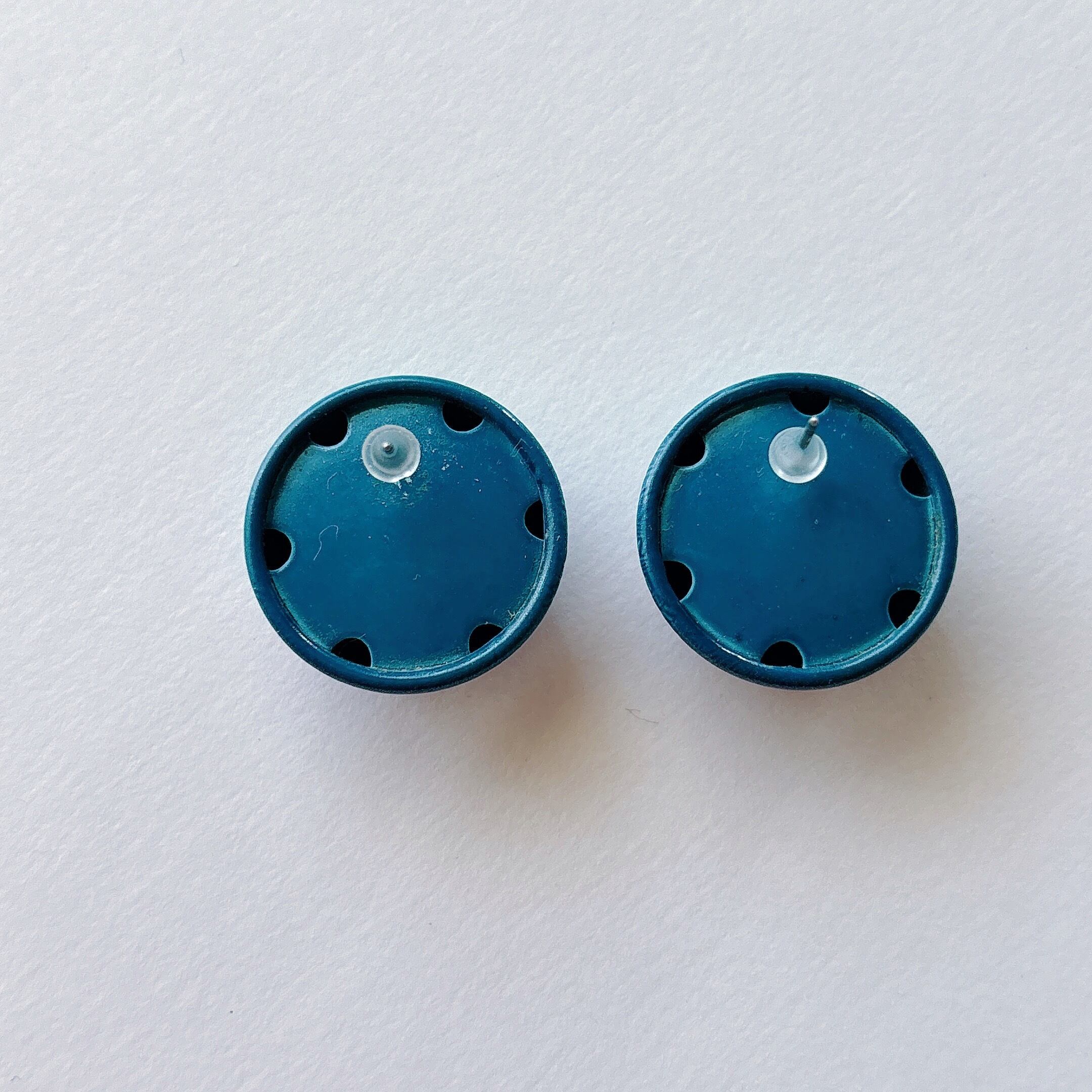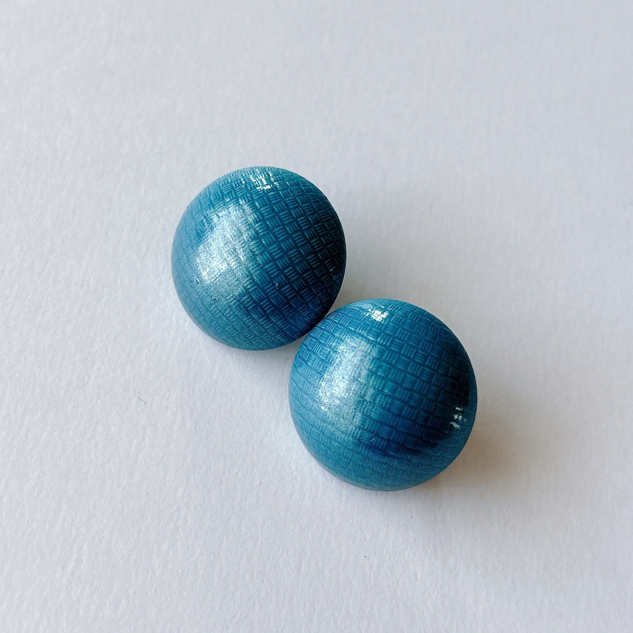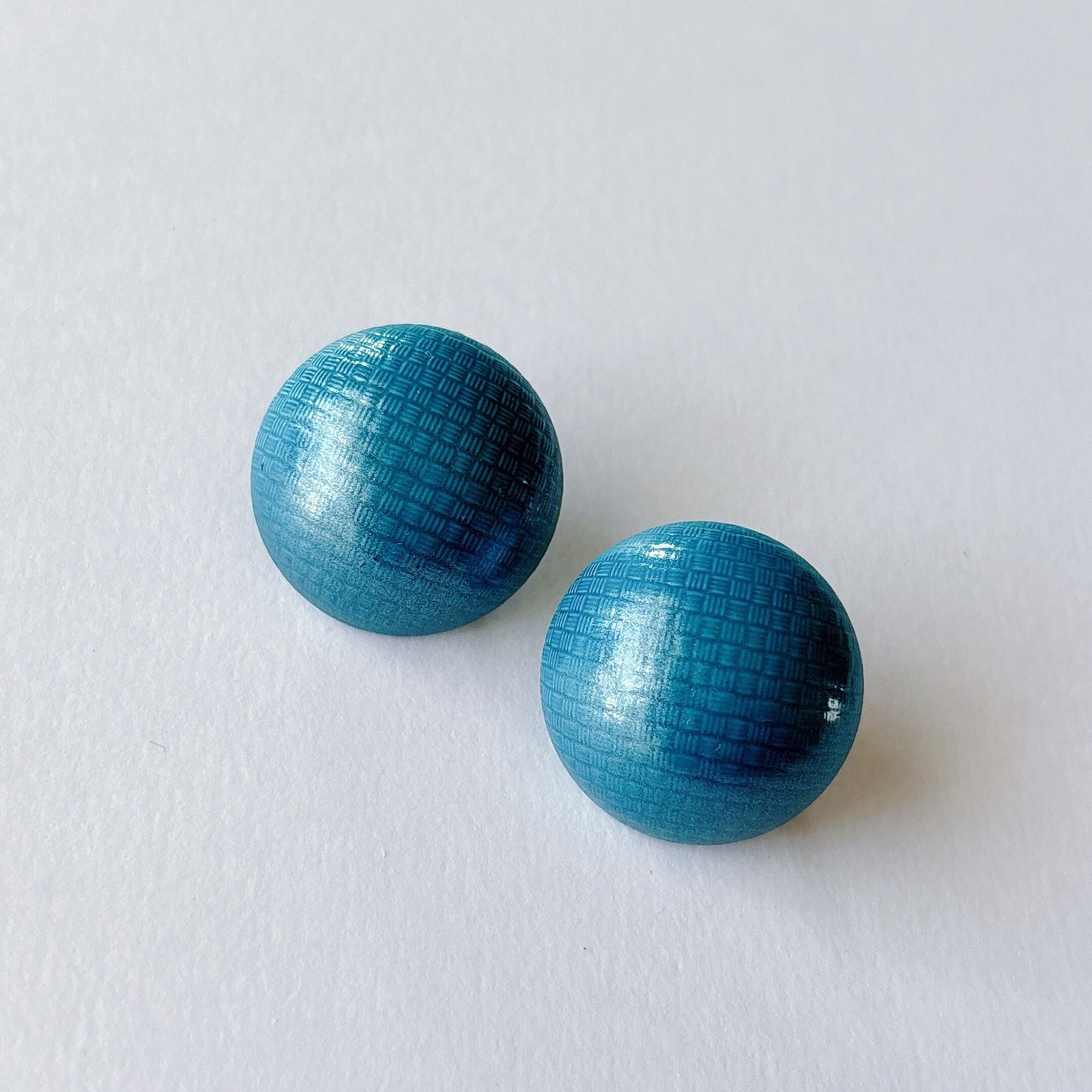 Vintage 80s blue enamel cabochon circle earrings ヴィンテージ 80年代 ブルー エナメル カボション 丸型 ピアス b2133 | OBAKEPEACH