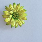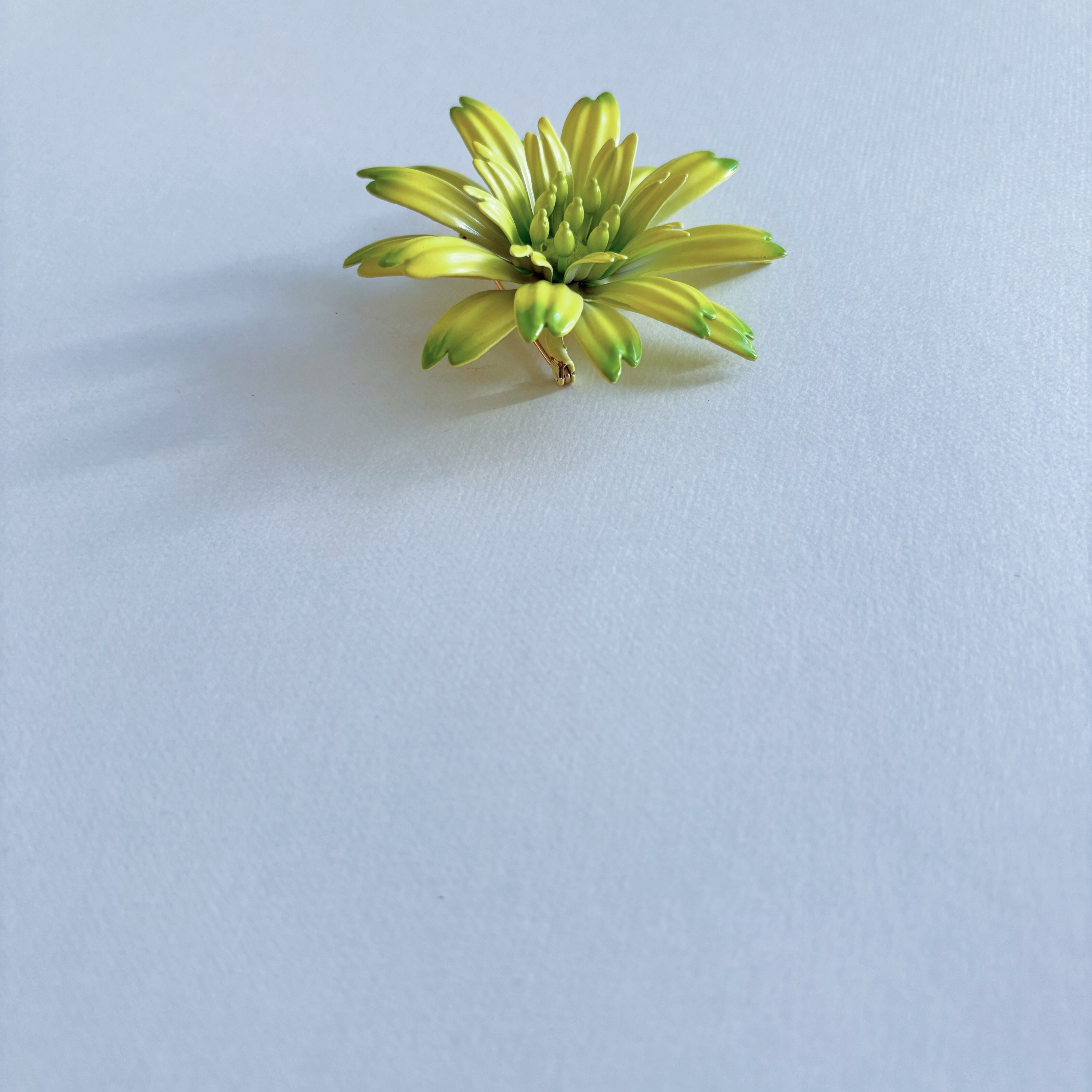 メタル素材にイエロー×グリーンのエナメルで色付けした花のデザイン。