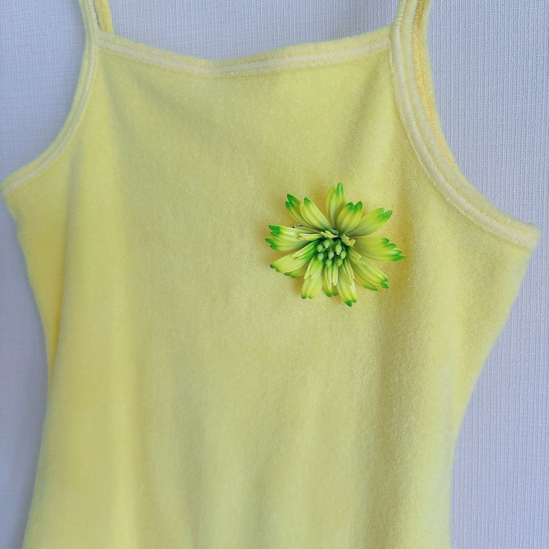 Vintage 60s - 70s yellow green enamel flower brooch ヴィンテージ 60年代 - 70年代 イエロー グリーン エナメル フラワー 花 ブローチ b2097 | OBAKEPEACH