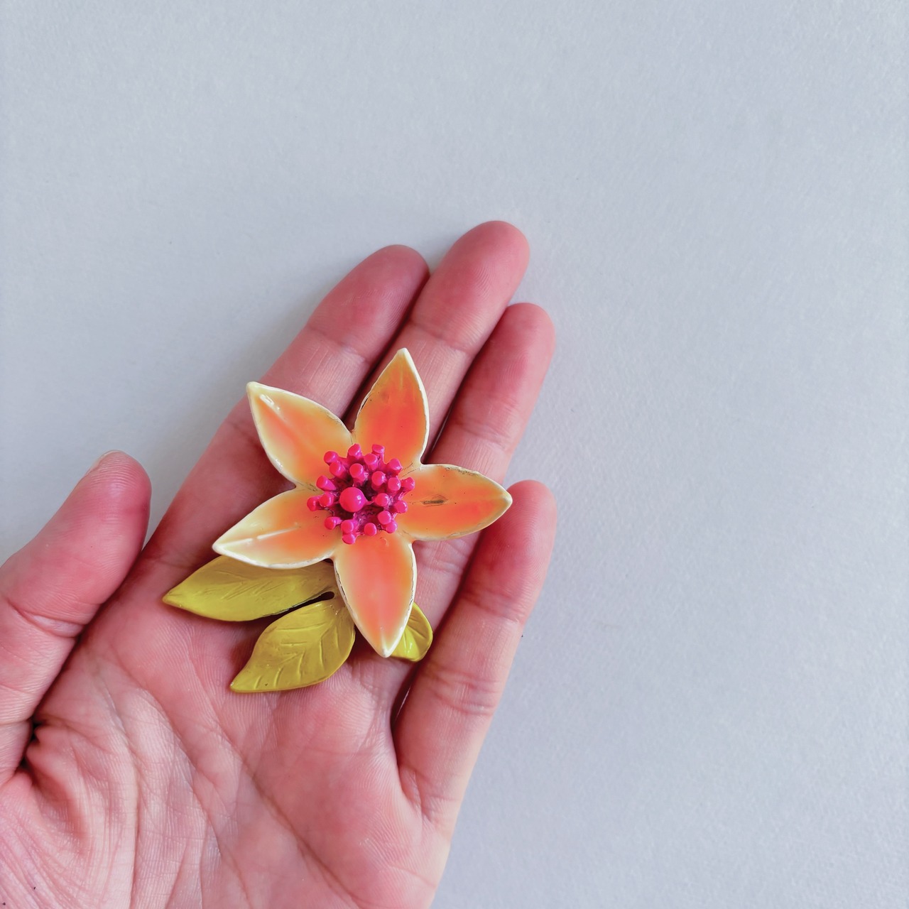 Vintage 60s - 70s pink green enamel flower brooch ヴィンテージ 60年代 - 70年代 ピンク グリーン エナメル フラワー 花 ブローチ b2077 | OBAKEPEACH