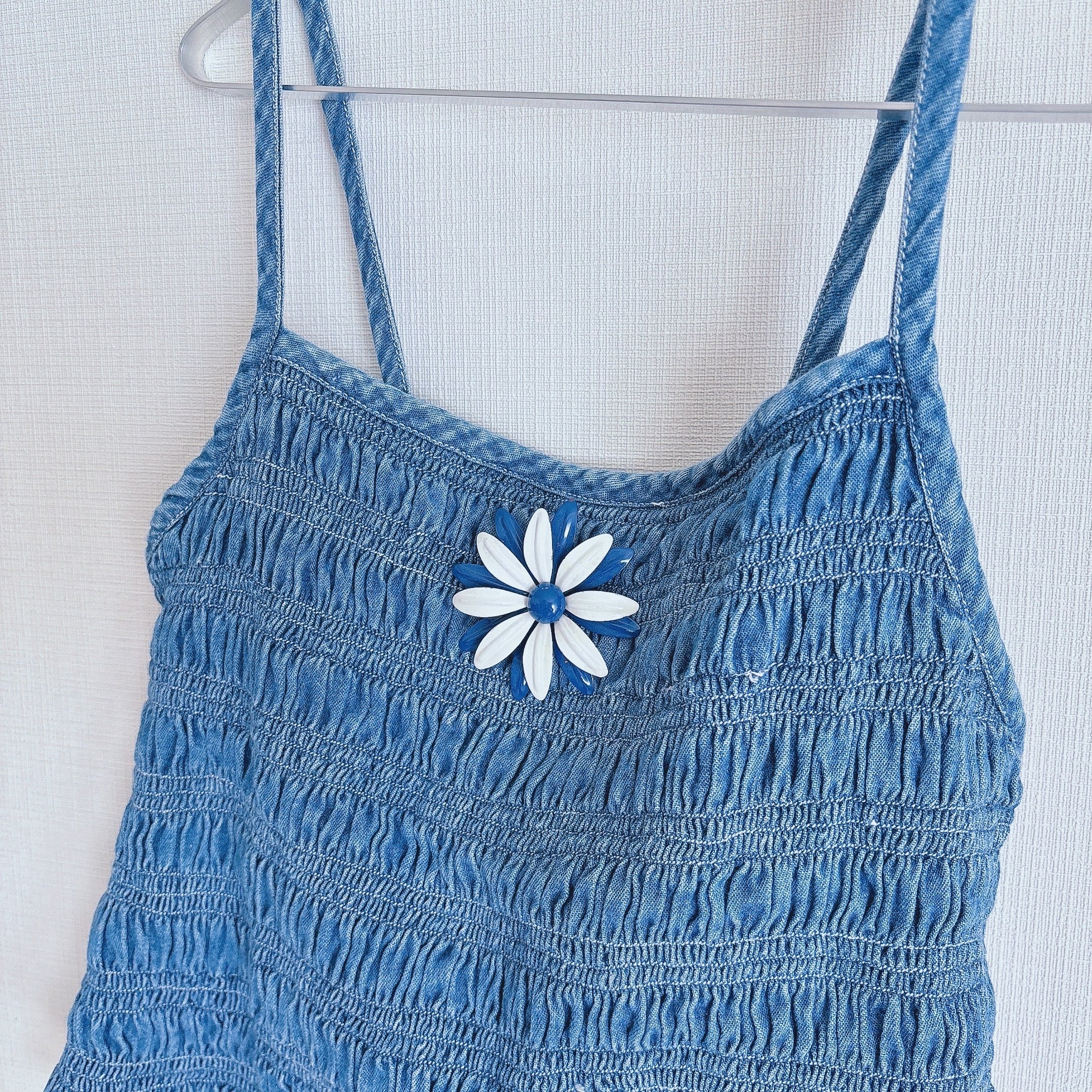 Vintage 60s - 70s navy white enamel flower brooch ヴィンテージ 60年代 - 70年代 ネイビー ホワイト エナメル フラワー 花 ブローチ b2115 | OBAKEPEACH