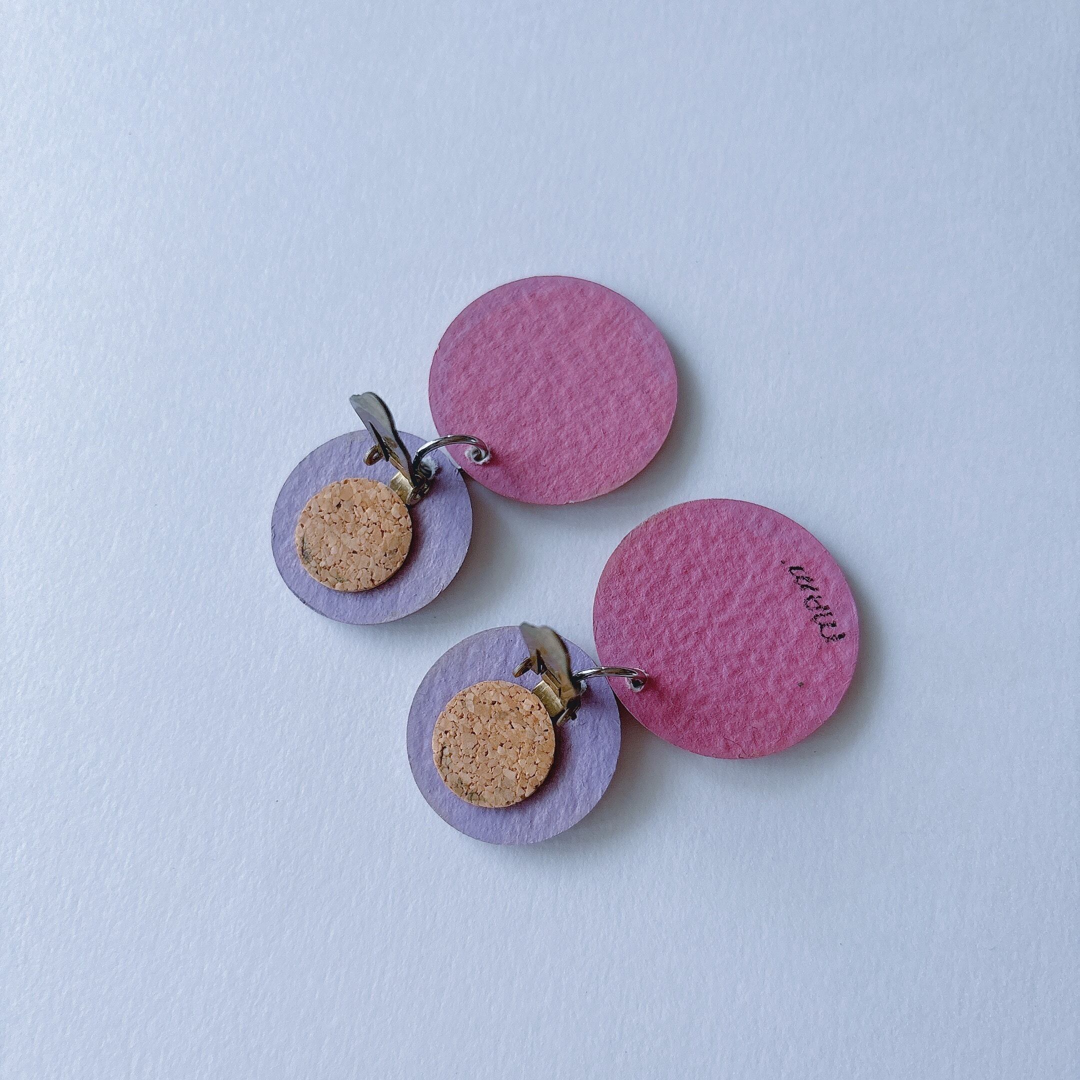 MAM' Vintage 80s pink purple green paper circle dangle earrings ヴィンテージ 80年代 ピンク パープル グリーン ペーパー 丸型 ダングル イヤリング