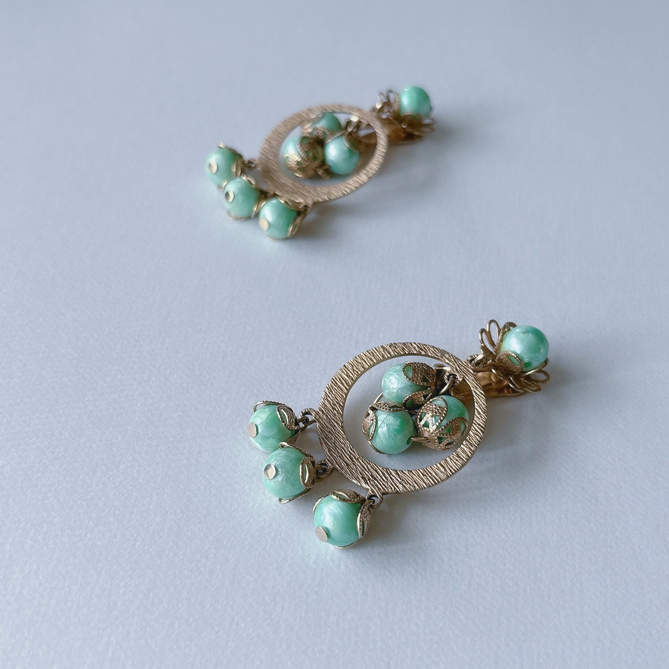 Vintage 60s - 70s gold tone blue plastic beads dangle earrings ヴィンテージ 60年代 - 70年代 ゴールドトーン ブルー プラスチック ビーズ ダングル イヤリング | OBAKEPEACH