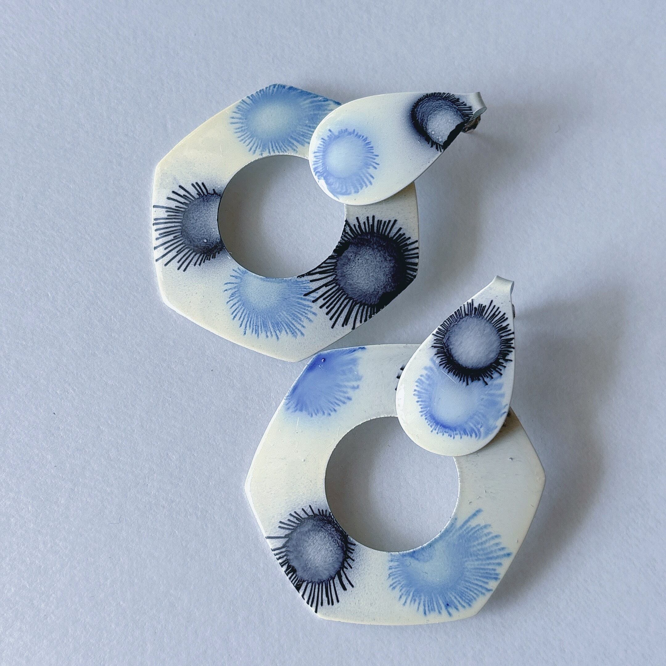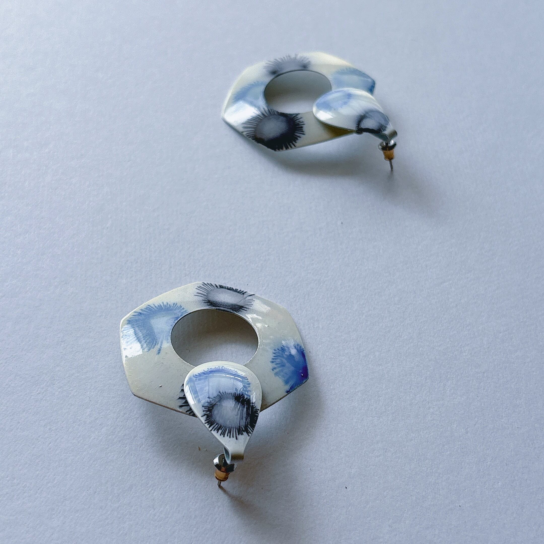 Vintage 80s white blue enamel hoop dangle earrings ヴィンテージ 80年代 ホワイト ブルー エナメル フープ ダングル ピアス | OBAKEPEACH