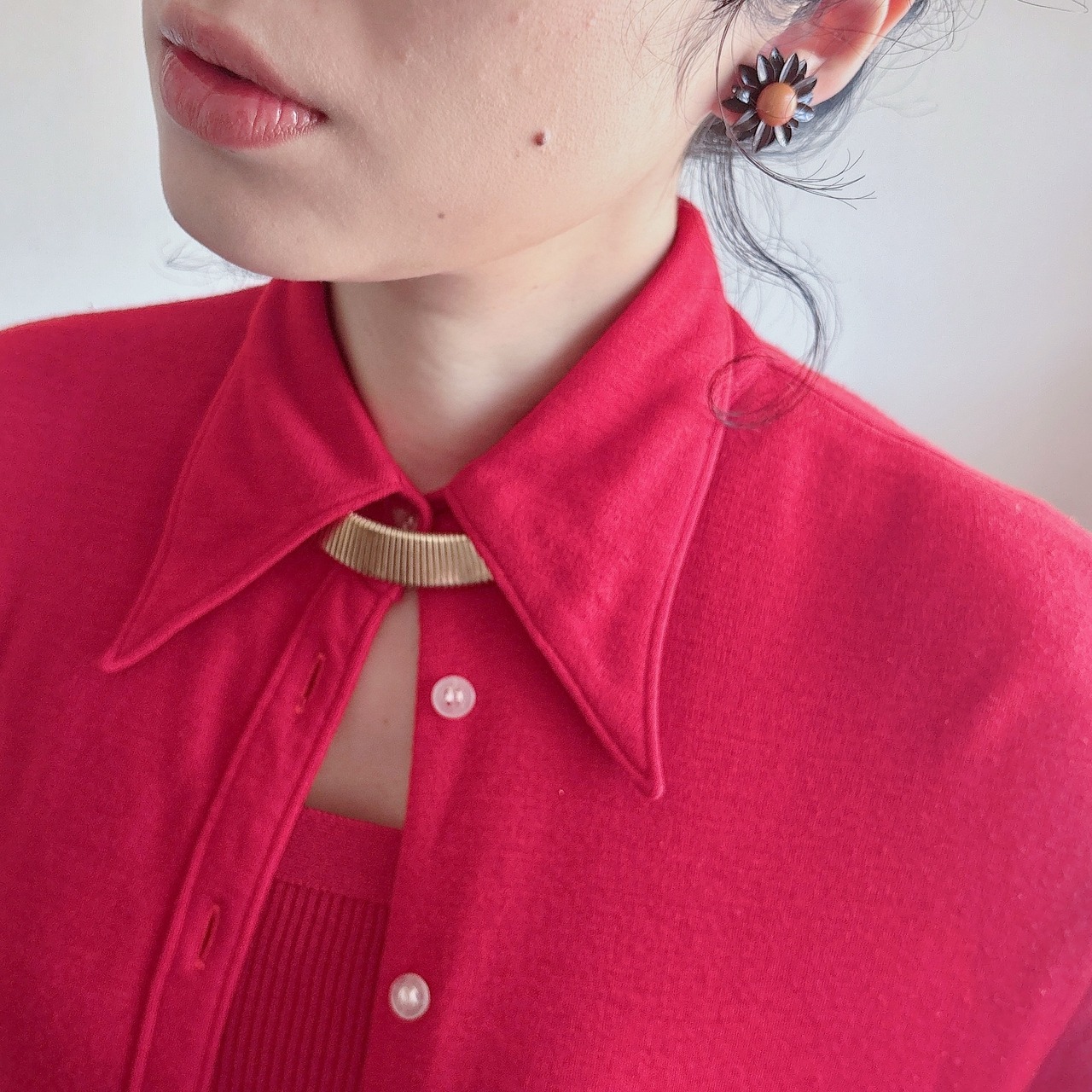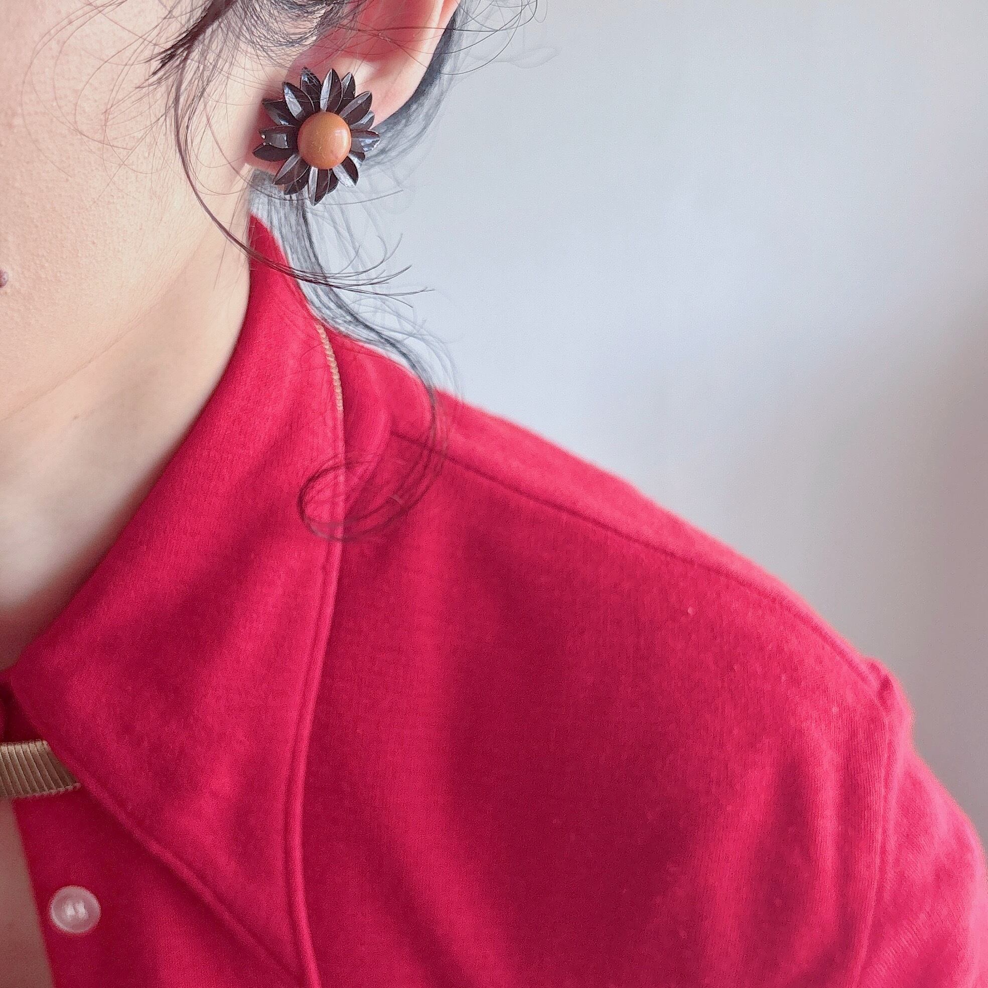 Vintage 60s - 70s brown orange enamel flower earrings ヴィンテージ 60年代 - 70年代 ブラウン オレンジ エナメル フラワー 花 イヤリング | OBAKEPEACH